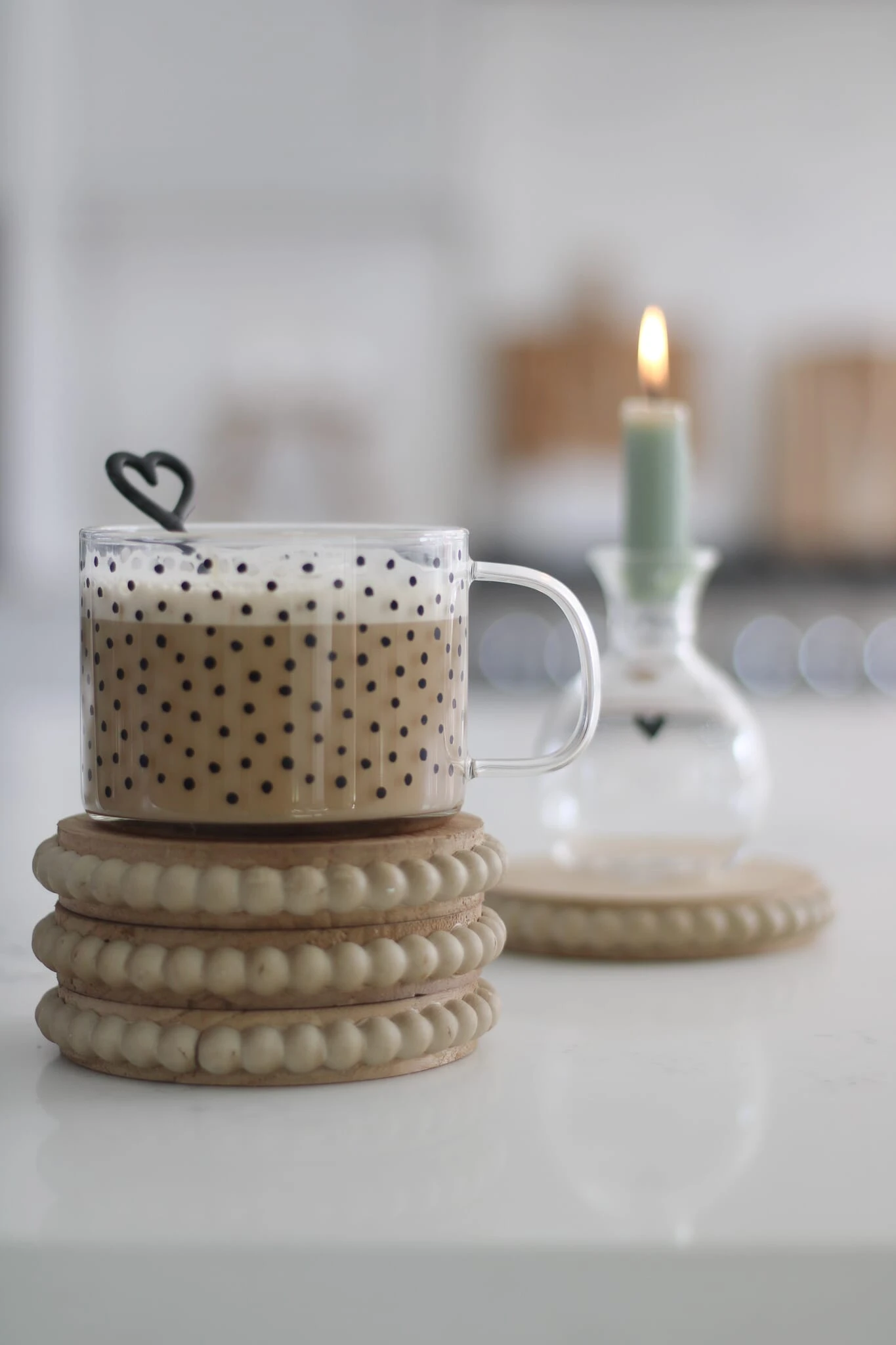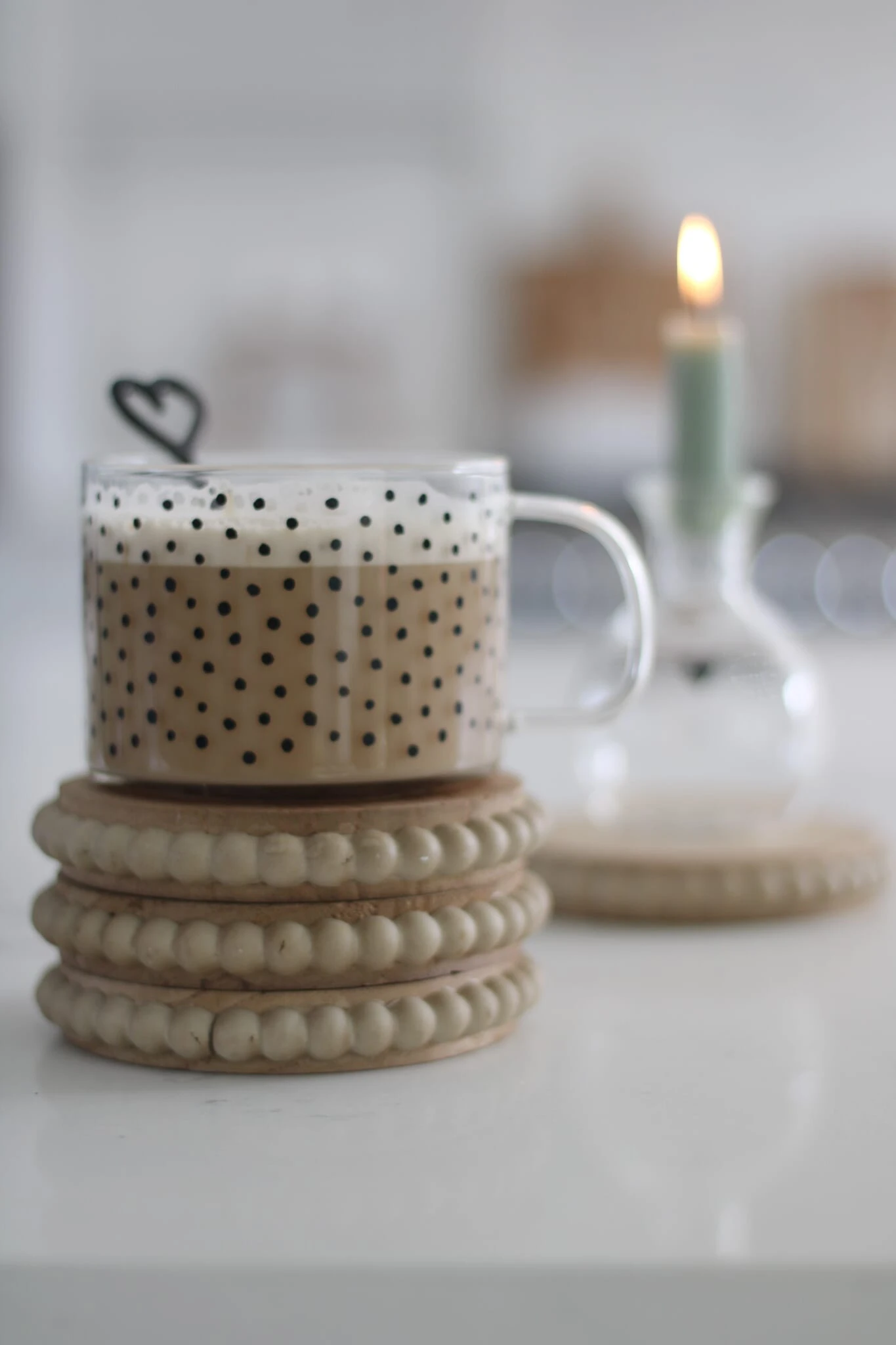 Style these coasters with one of our cute glass mugs, a set of tea spoons or use these wooden coasters as bases for your favourite candle holders or scented candles.