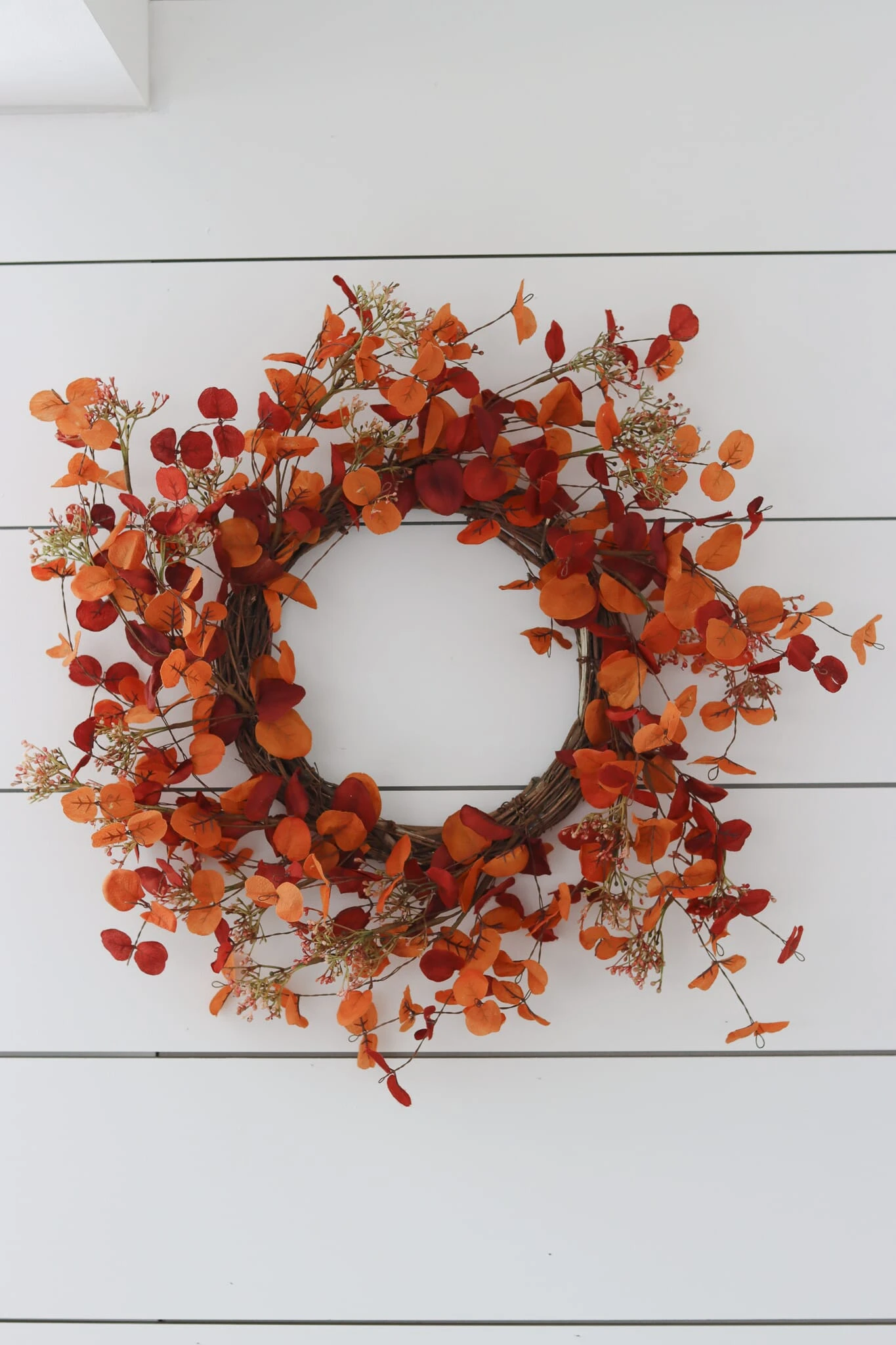 Enhance your autumn decor with the exquisite our Autumn Equinox Wreath. Bursting with orangey-red autumnal colours, this high-quality wreath adds a touch of warmth and charm to your space. Perfect for hanging on doors, walls, or fireplace walls or use it to surround your autumn table decorations, this autumn wreath it brings the essence of autumn into your home.