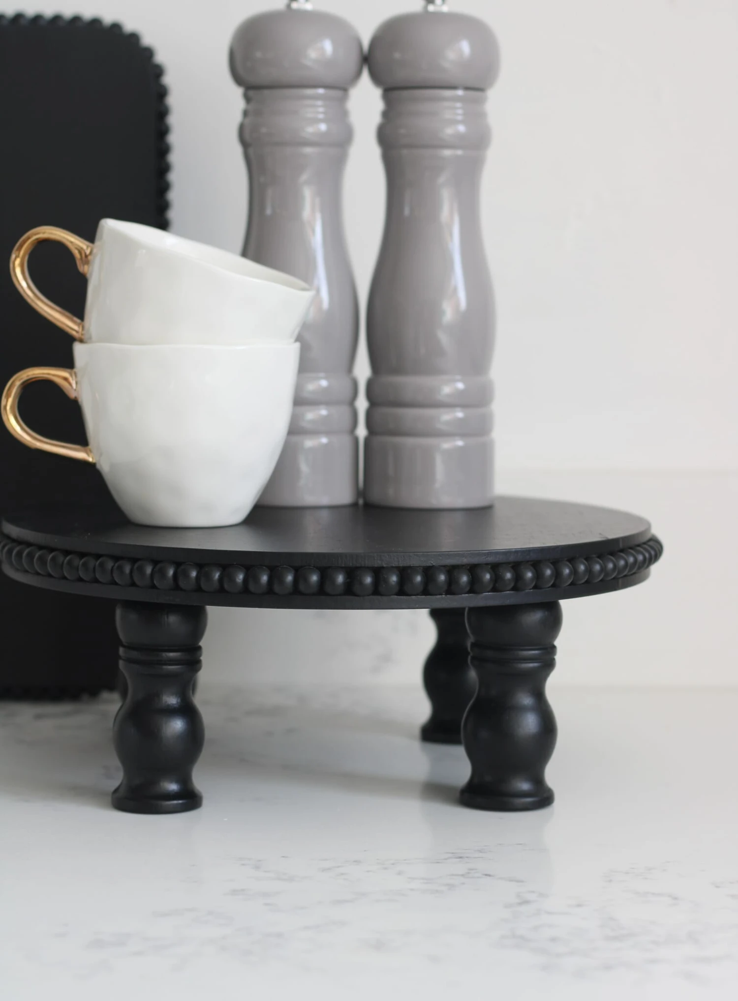 These shabby chic round tray is perfect for adding some height to your work stop surfaces, finished with beaded detail these wooden trays are perfect for the shabby chic decor lover.