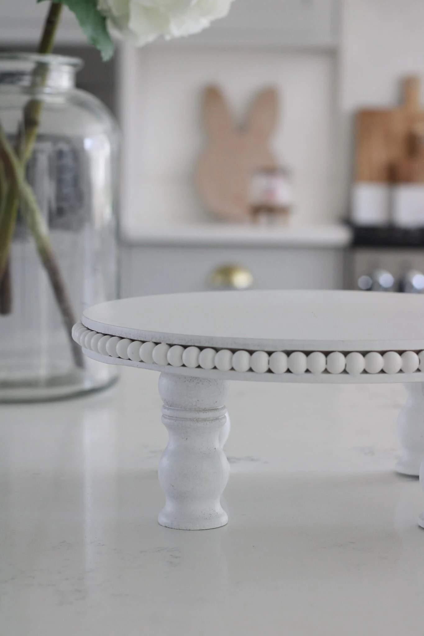These shabby chic round tray is perfect for adding some height to your work stop surfaces, finished with beaded detail these wooden trays are perfect for the shabby chic decor lover.