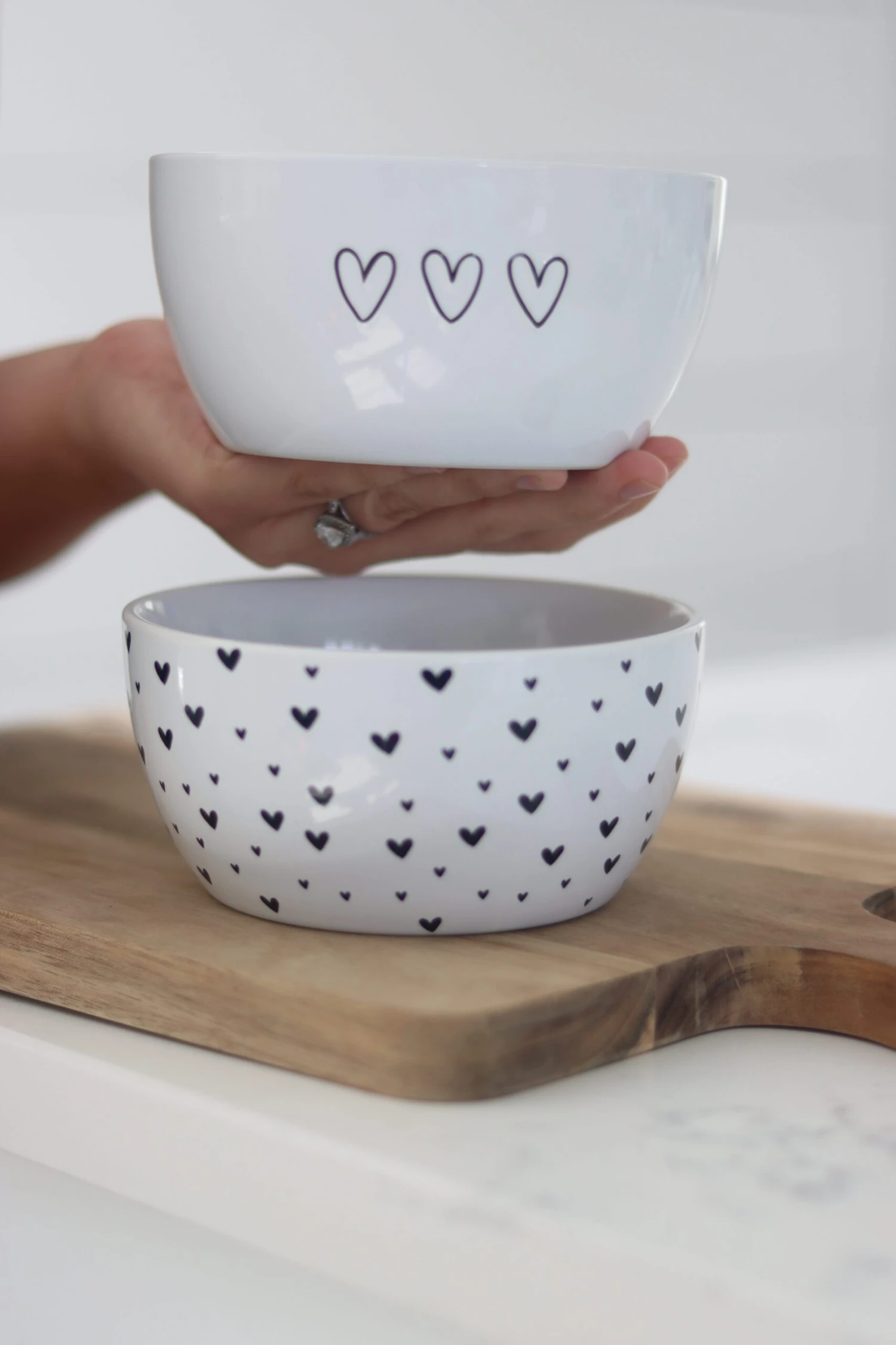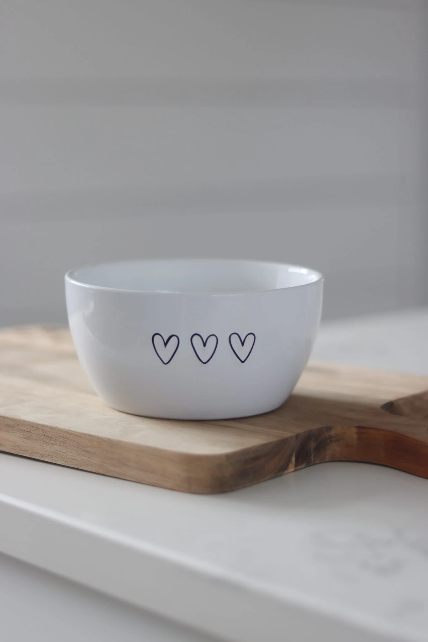 Our ceramic bowls are made from stoneware finished with an embossed heart detail painted in pink.