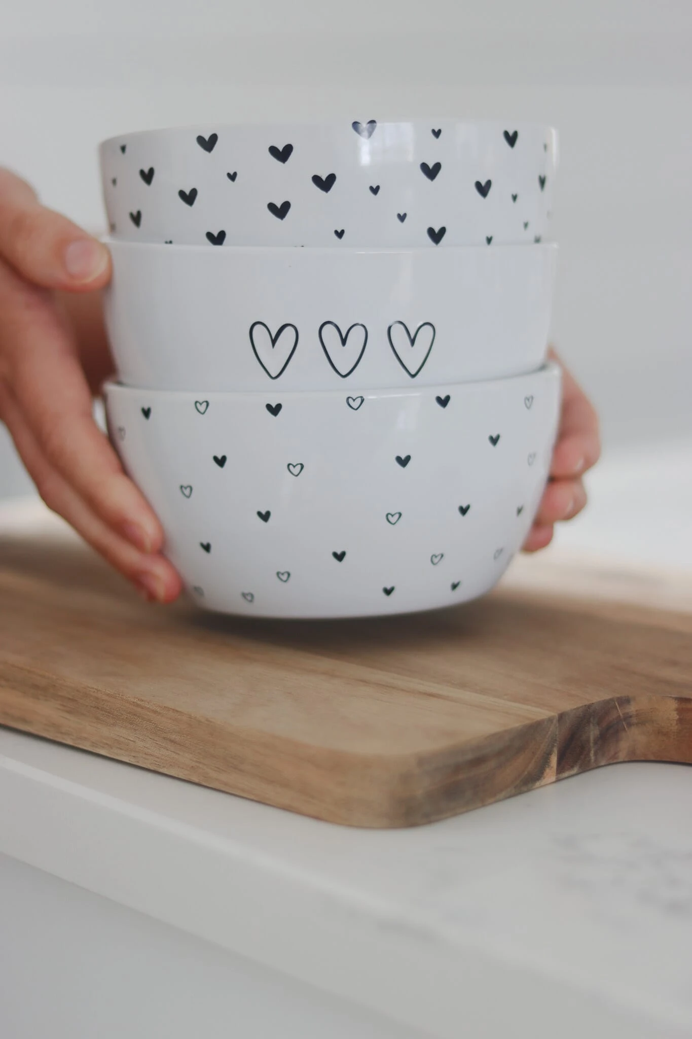 A set of good durable bowls are essential for your kitchen collection, our ceramic bowls are not supposed to be placed away hidden in cupboards but styled and displayed when not in use. Style with a raised display stand, some tea coffee sugar canisters, a couple of matching ceramic mugs and some of our heart tea spoons to transform your kitchen corner into a cosy space.