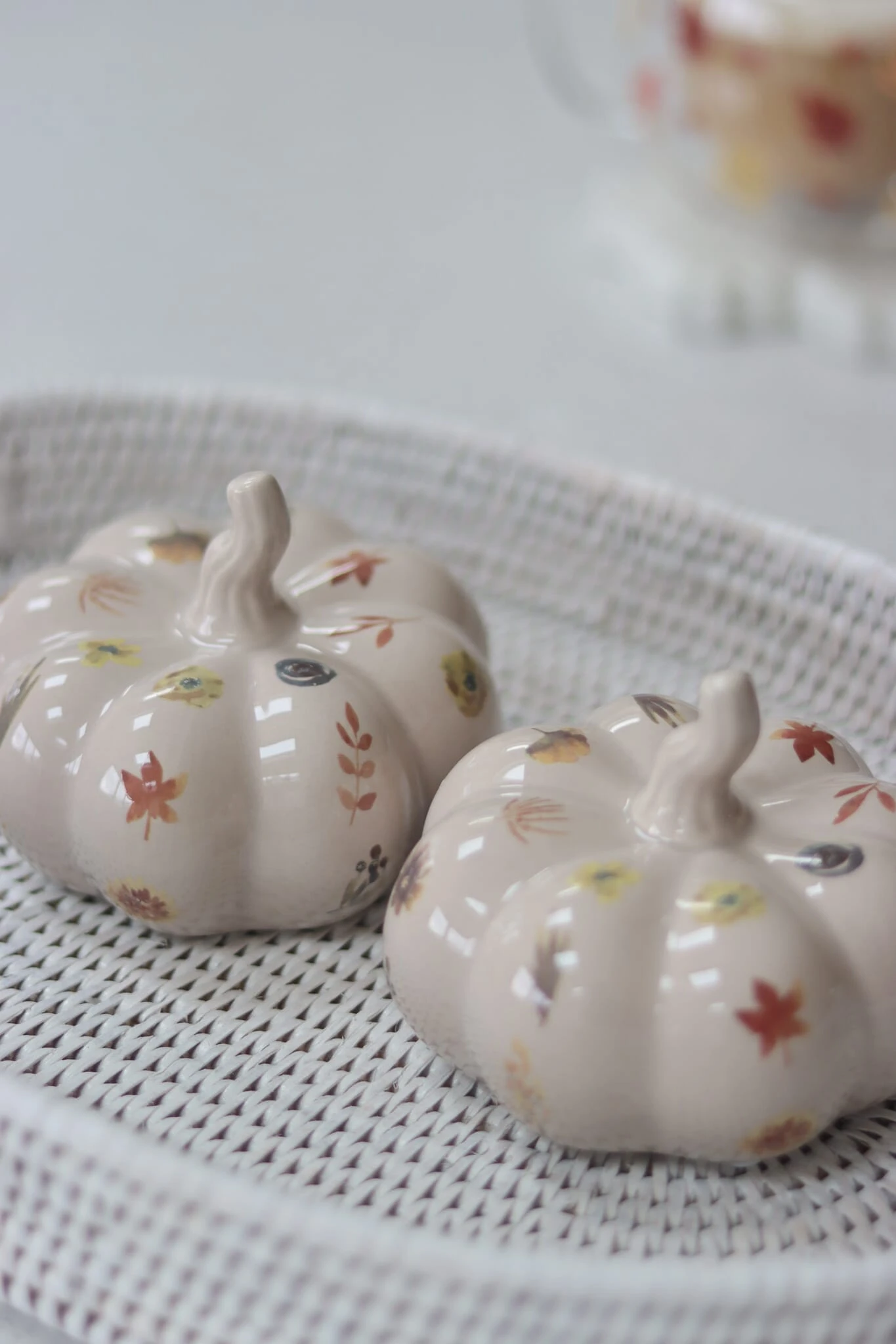 Ceramic pumpkins, the perfect addition to to your autumn homeware collection. These ceramic pumpkins are finished with our autumnal flowers pattern, bringing a cosy yet bright element to your autumn decor.