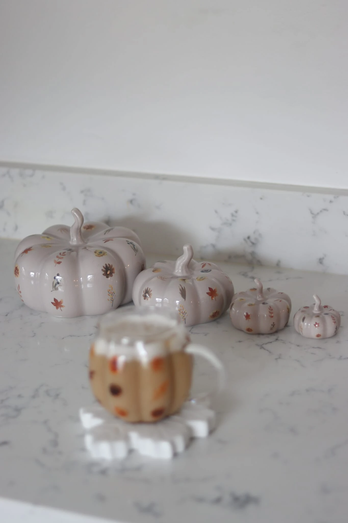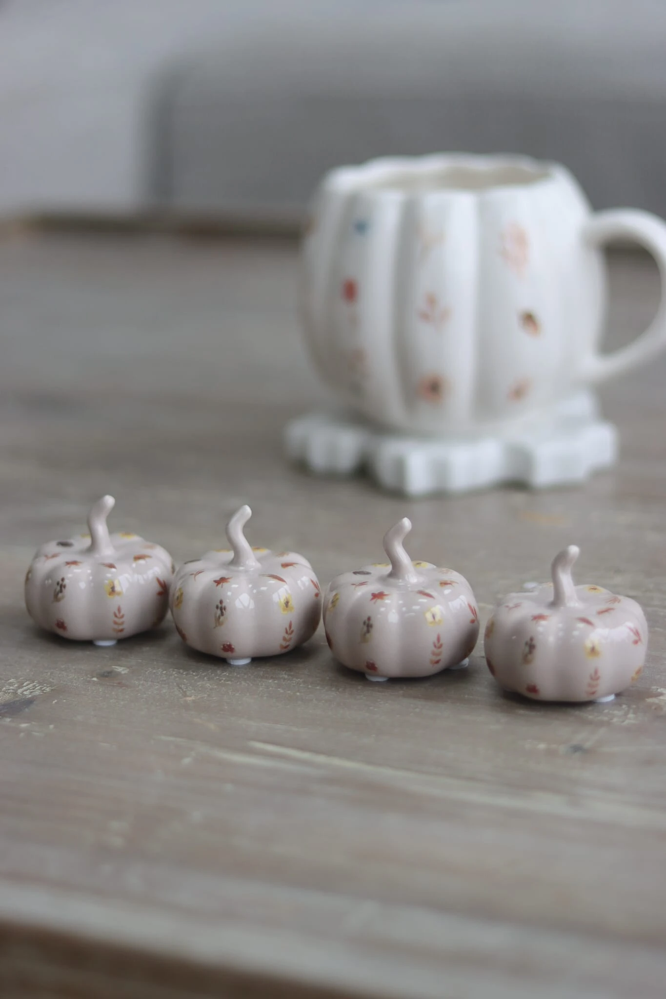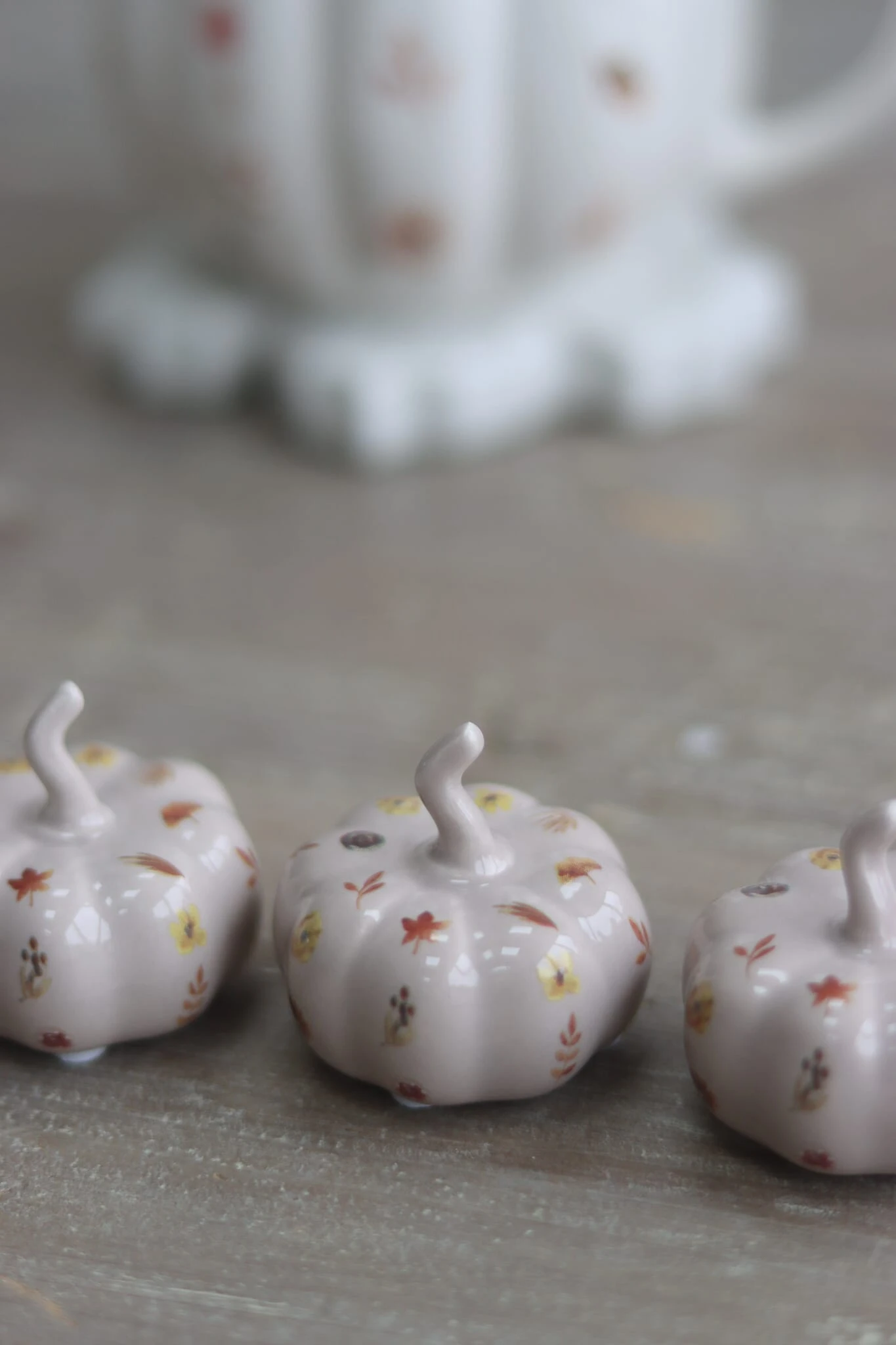 Add a touch of charm to your autumn homeware with our Ceramic Pumpkins. These off white pumpkins with Autumnal flowers bring a cosy warm inviting feeling to your autumn decor.