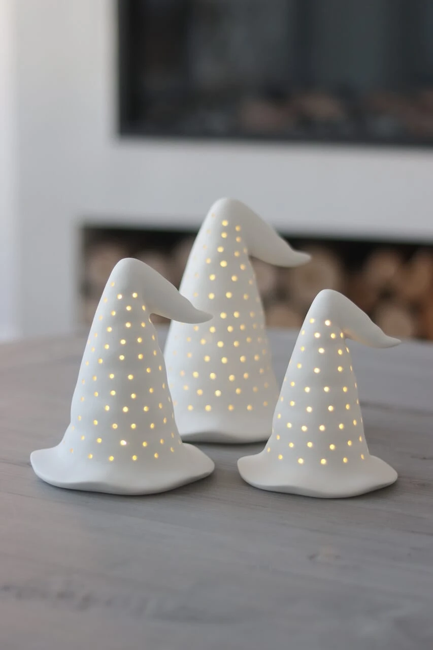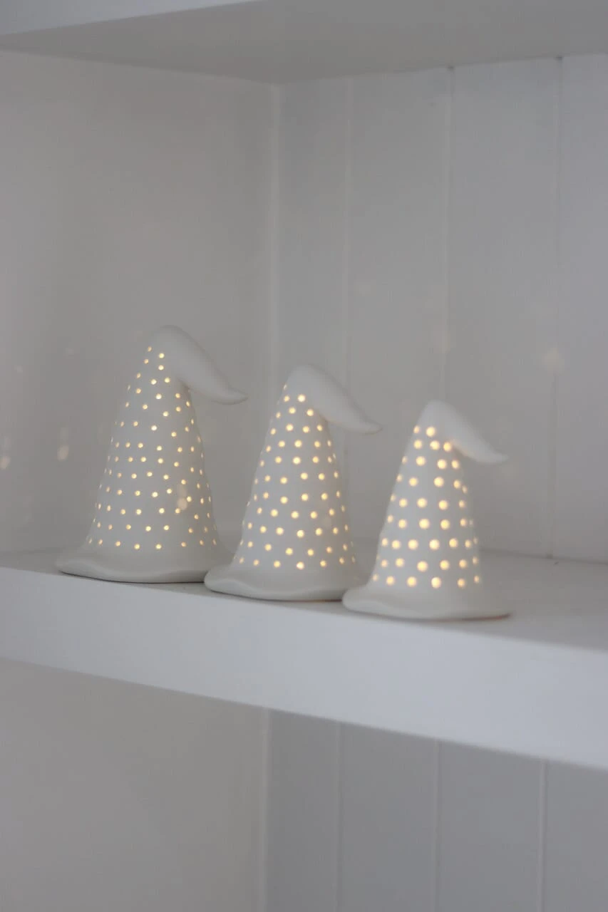Introducing our LED witch hats, made from ceramics with small holes to gently let the light through, our set of 3 witch hats are the perfect way to add Halloween home decor into your home, simple but beautiful.