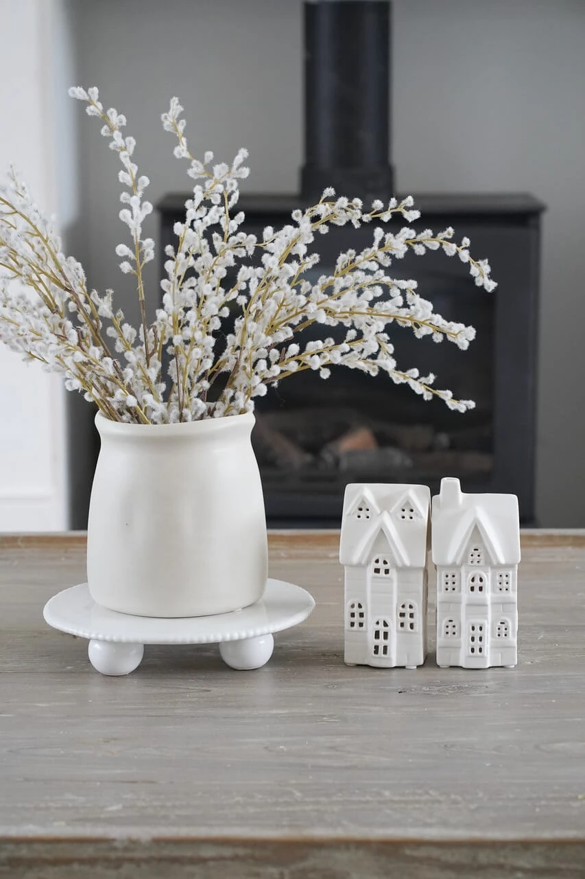 This white coloured vase with cream tones has a dimpled finish and can be used for faux flowers or real. Add to your favourite coffee table, kitchen island unit or shelving unit to transform you’re a small or large area.