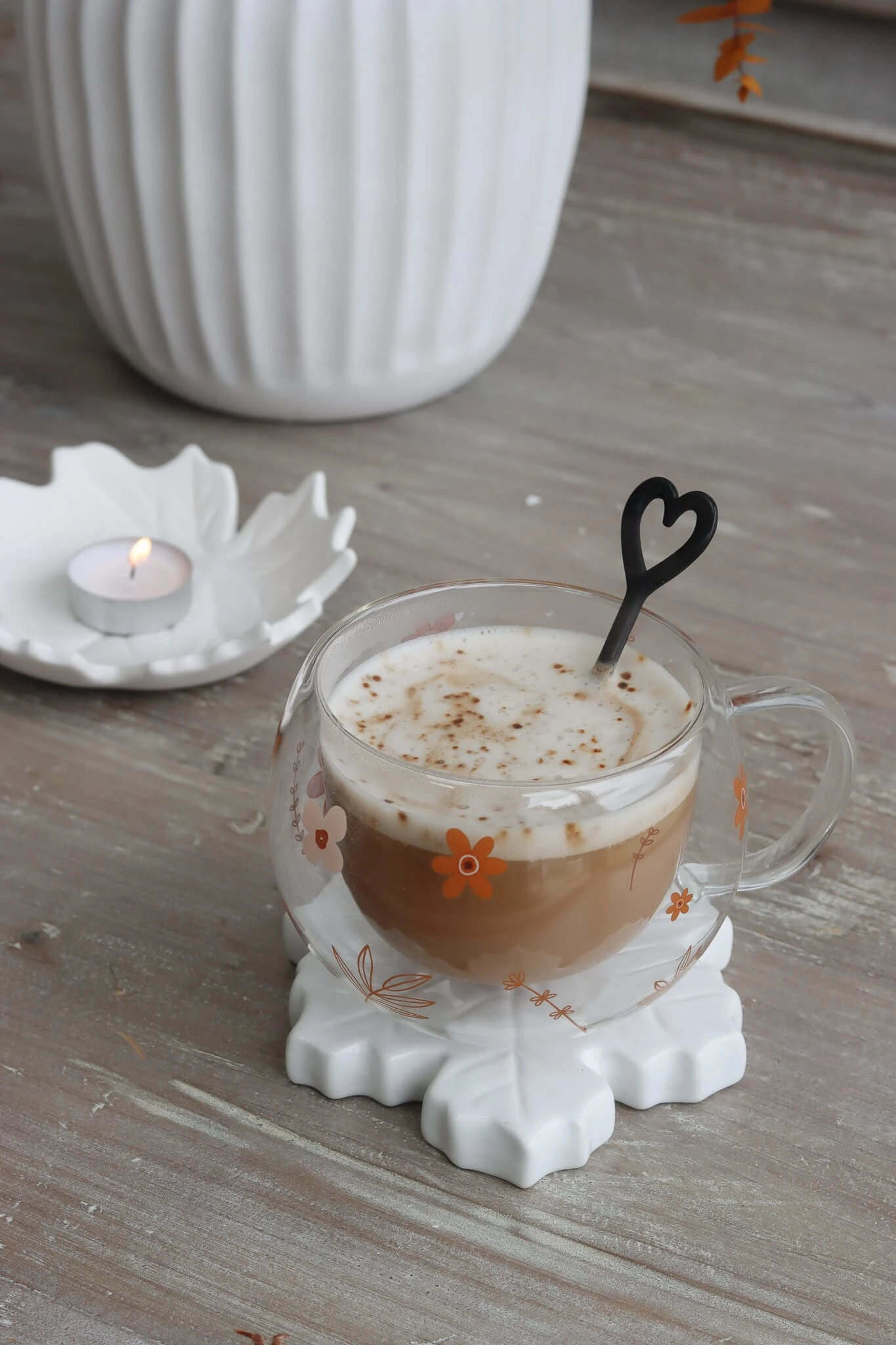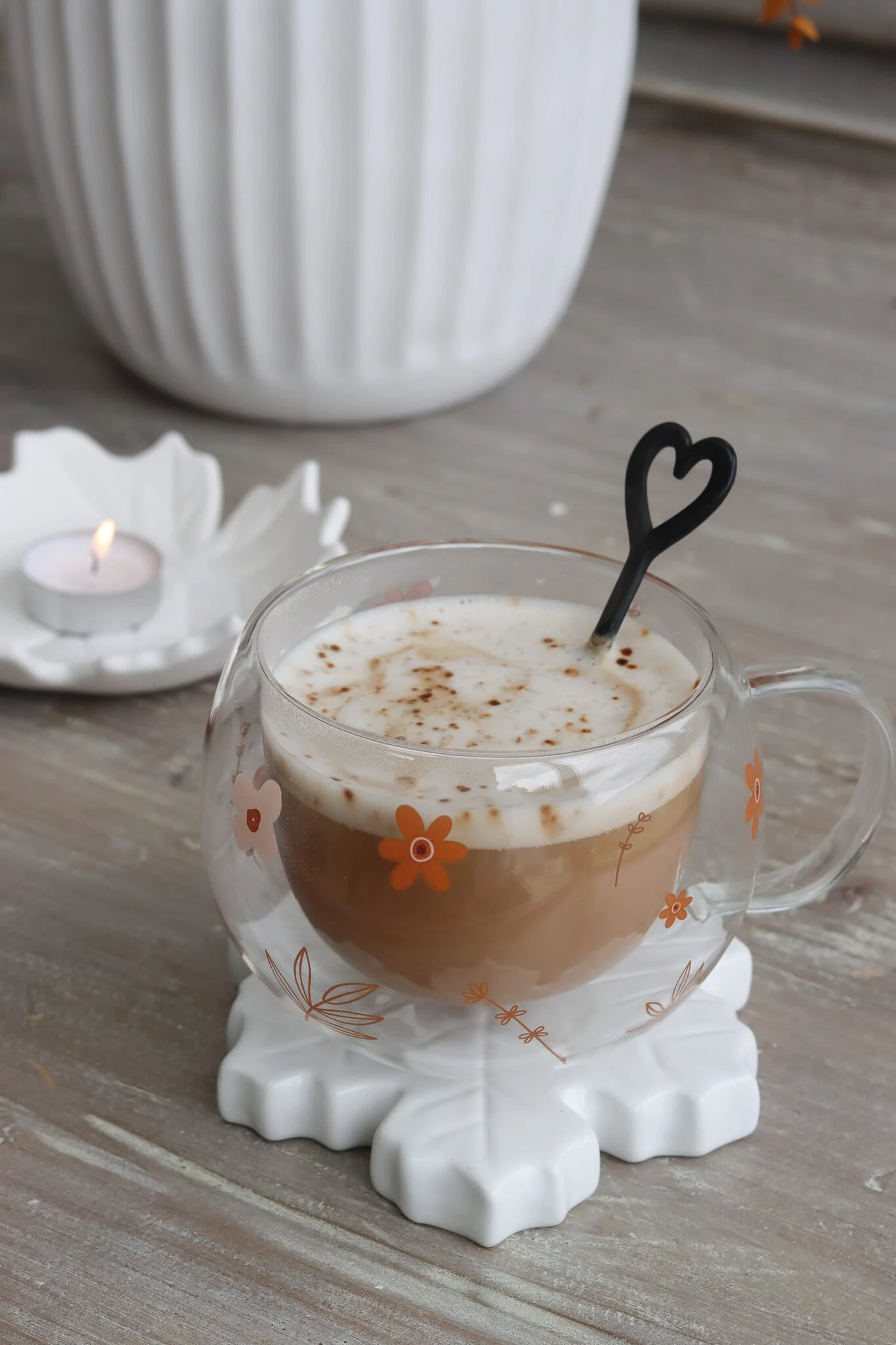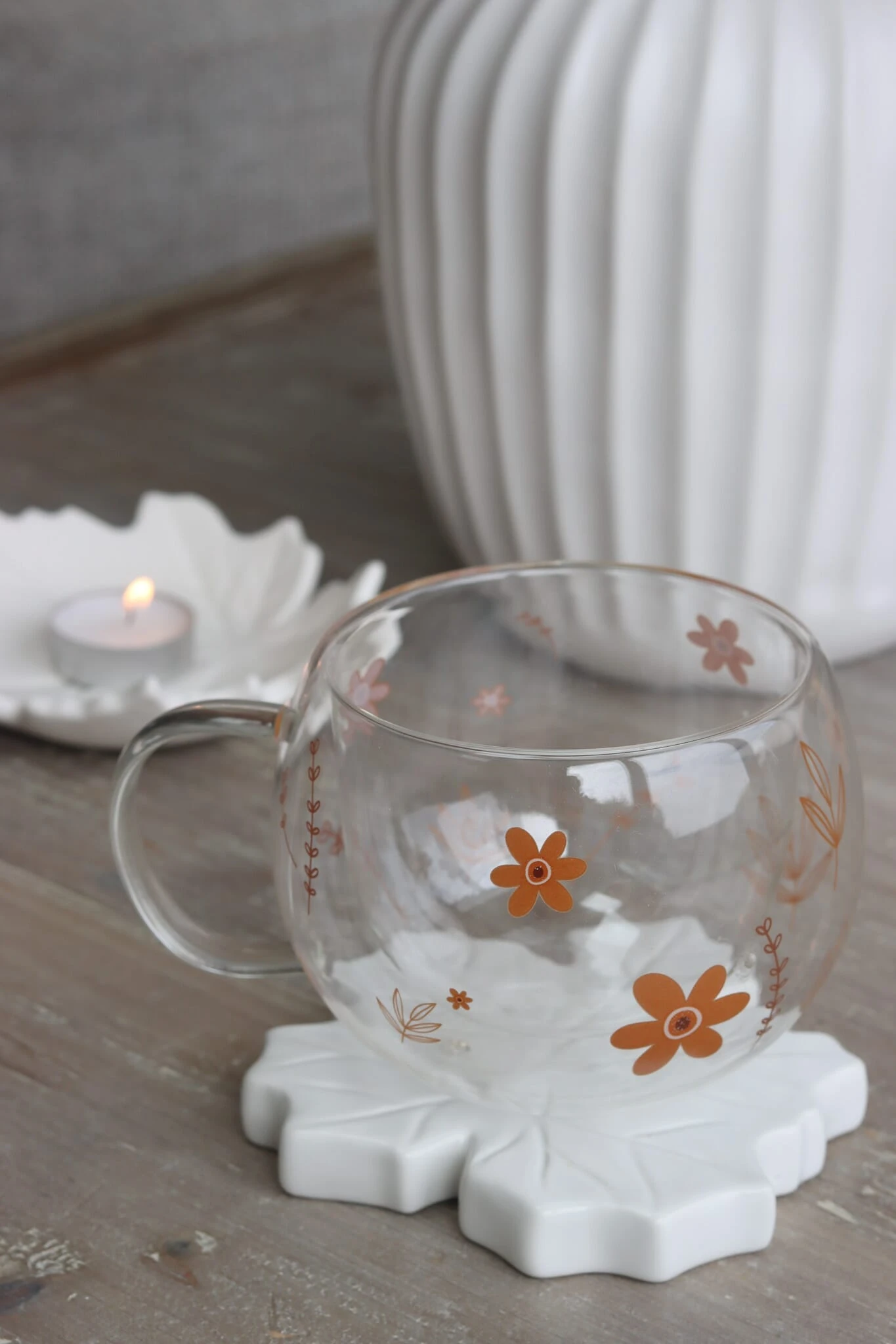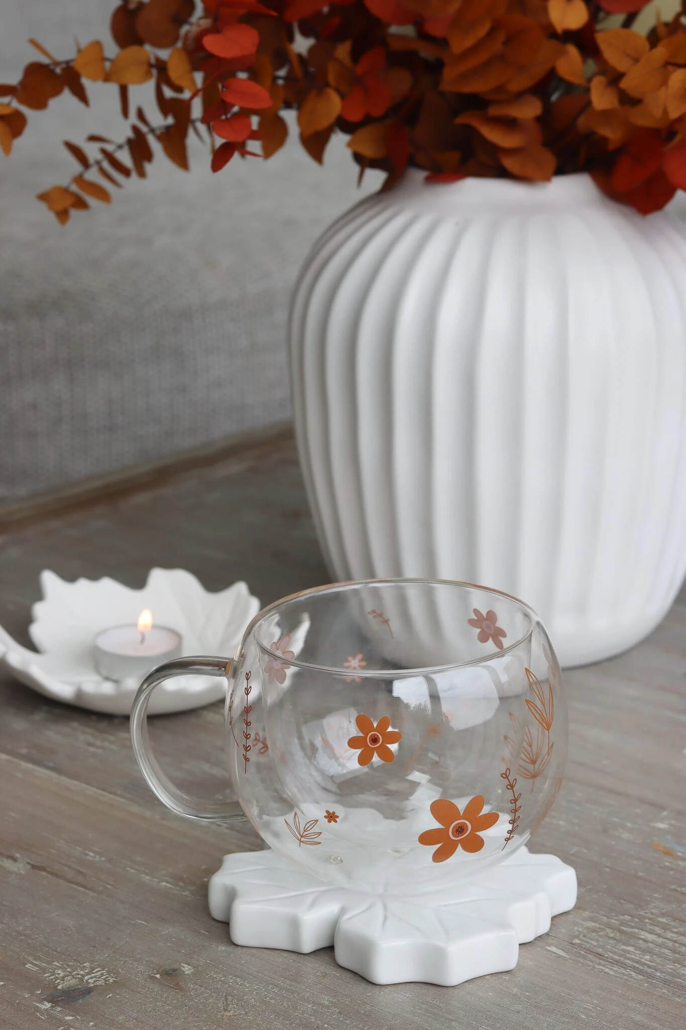 Say hello to our large double wall glass Autumn mug, the perfect size mug to wrap your hands around on a cold Autumn day. The double wall layer allows your drink to stay warmer for longer without feeling it on the outside. Etched with the most beautiful Autumnal leaves to get you in the mood for cosy season.