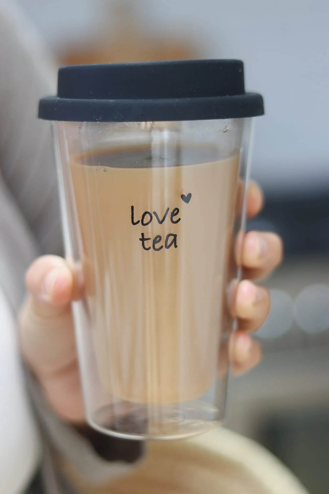 Brighten up your tea time with our double wall glass travel mug. This mug keeps your tea hot or cold for longer, making it an ideal companion for any journey.