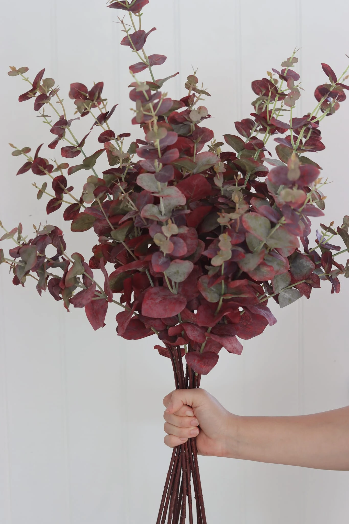 Beautiful, rich Burgundy eucalyptus stem. This deep toned Burgundy eucalyptus stem is ideal for Autumn and Winter, perfect for festive and Autumn arrangements or use on its own. If you’re looking for a higher quality faux flower these stems are perfect for you.