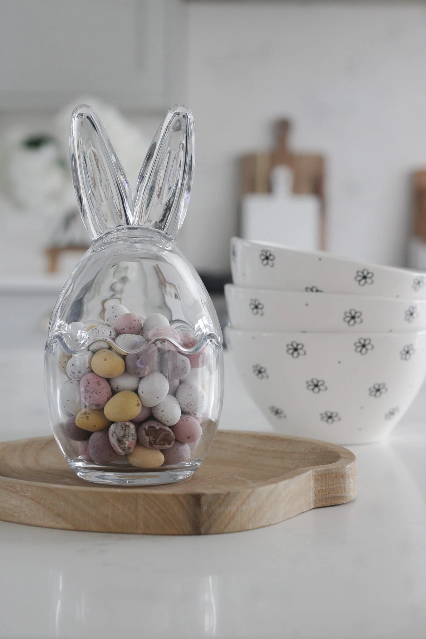 Our beautiful glass Bunny jars are back not only for Easter but so beautiful all year round, fill with your favourite sweets or use for other storage ideas around the home.