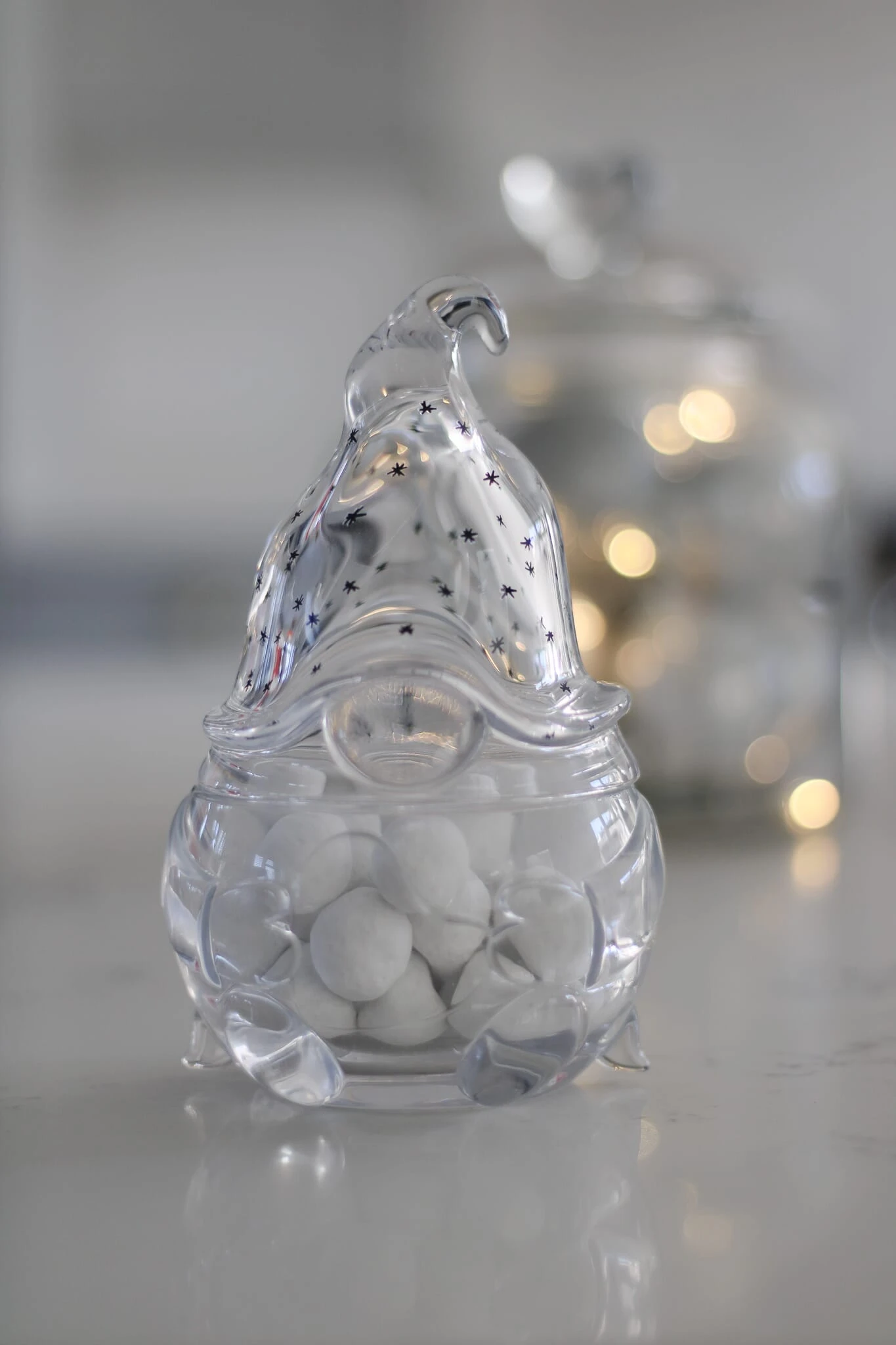 Introducing our cute glass gonks finished with black sparkles, this gonk is pretty as well as functional. Style with a wooden tray, a set of glass candle holders and your favourite Christmas inspired glass mug and enjoy the winter evenings.