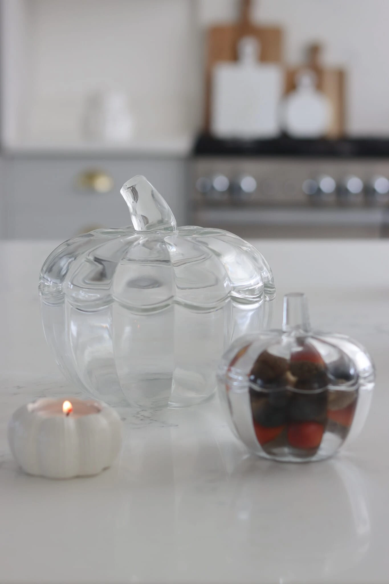 Welcome in the autumn season with our Glass Pumpkin Bundle. This bundle includes two pumpkins in different sizes, featuring bent stalk designs. Crafted from high-quality glass, these pumpkins are a must have autumn decor accessory this season.