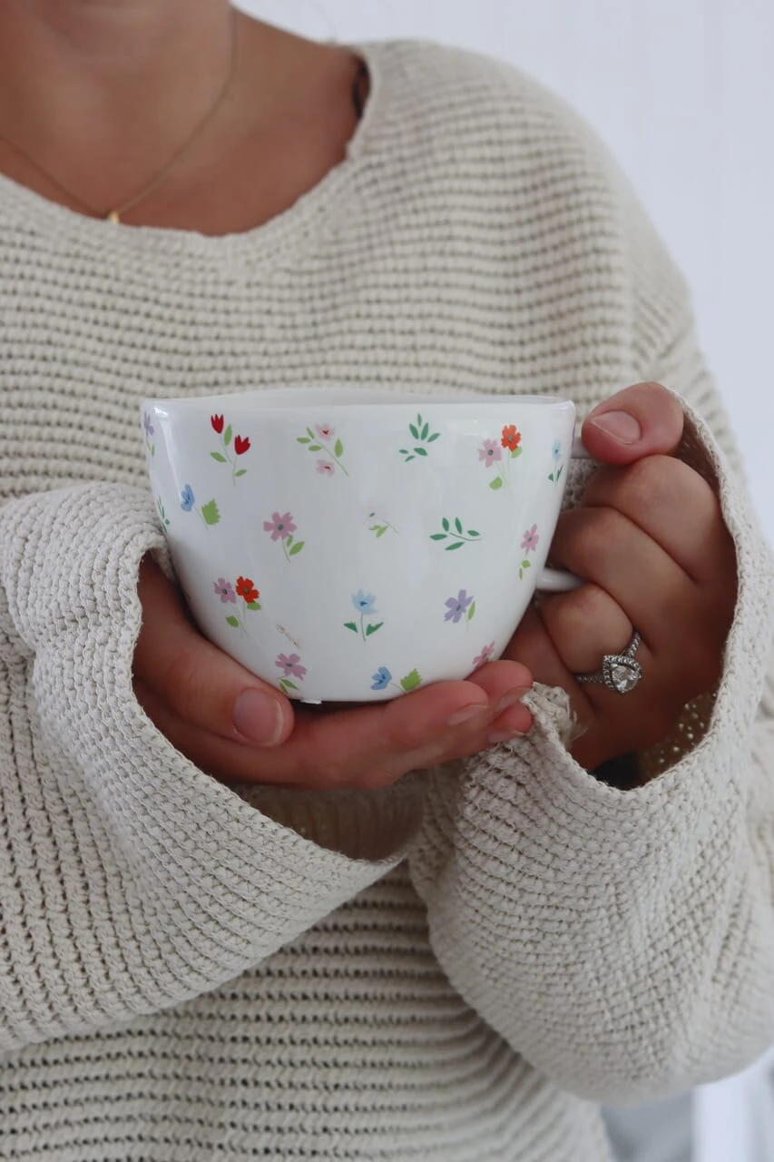 Our beautiful handcrafted irregular mugs our ideal to add to your cute mug collection, with its pretty flowers and bright colours it is ideal for wrapping your hands around on a sunny Spring day in your garden.