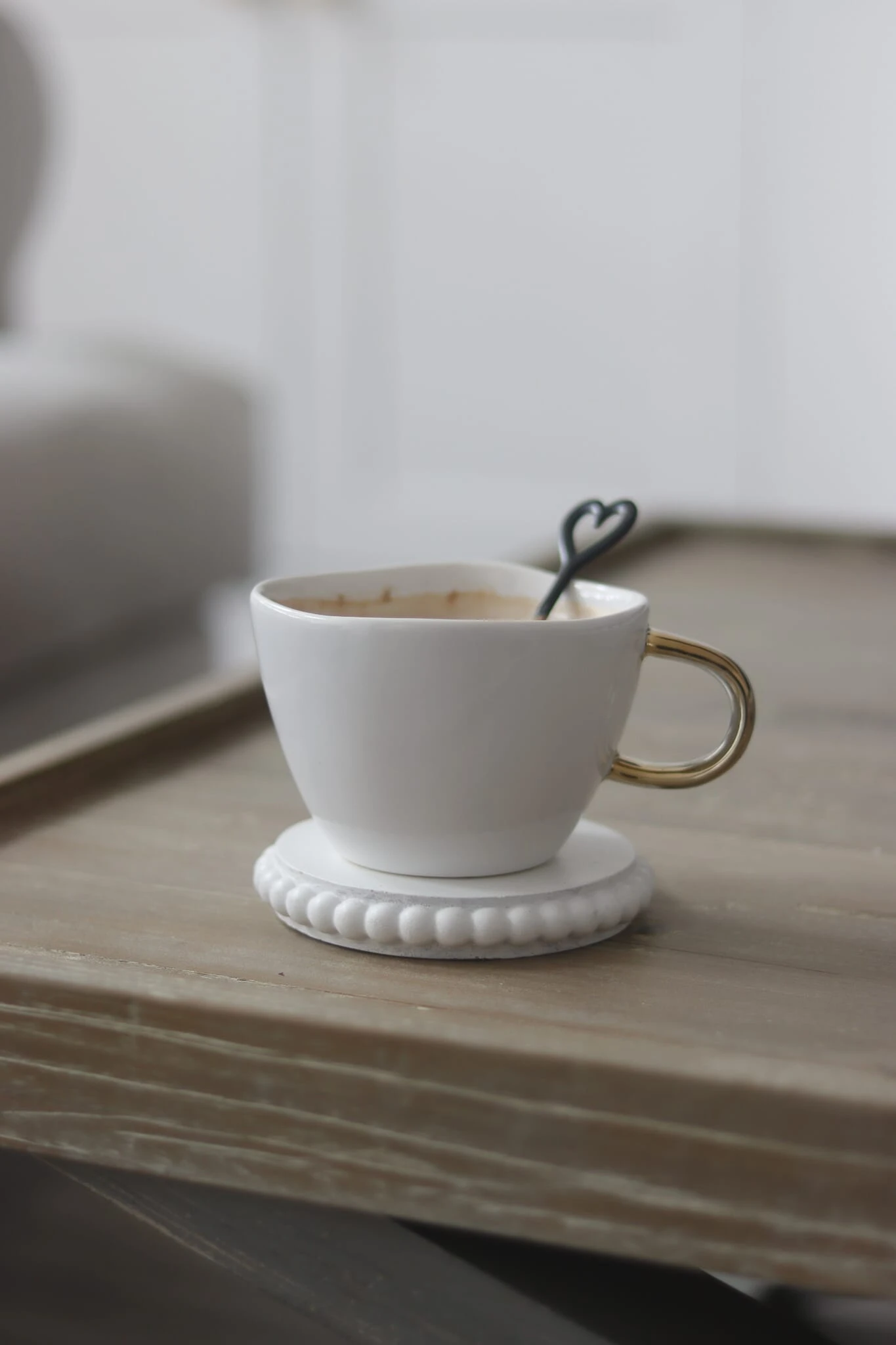 These are a quality ceramic mug super durable , and a lovely size for the perfect cup of tea or coffee. With its uneven shape and dimpled finish, our stoneware mugs are a a must have.