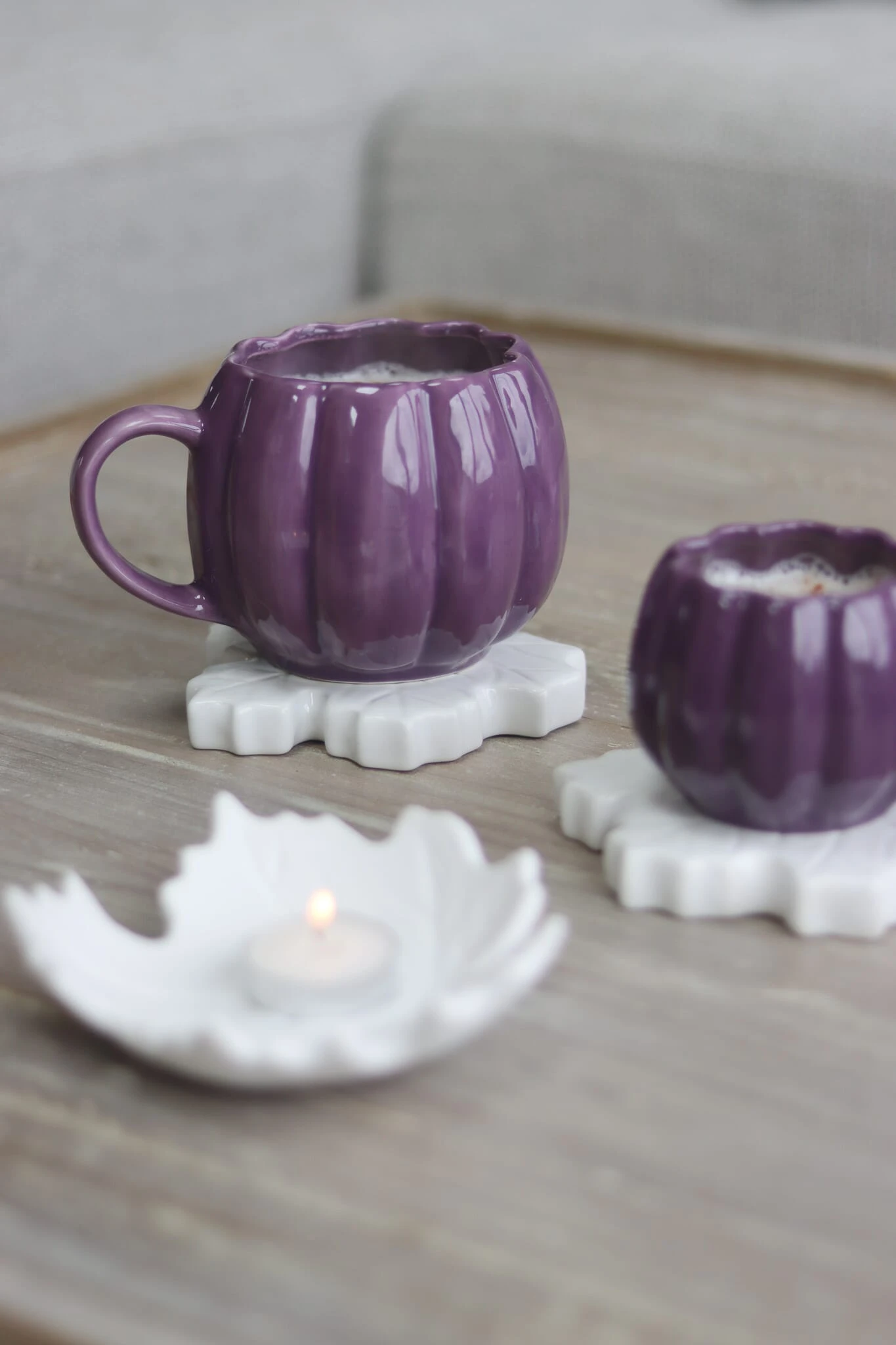 Welcome in the autumn season with our large Pumpkin Mug finished in a unique dark unique purple finish, perfect for halloween and the witch lovers!