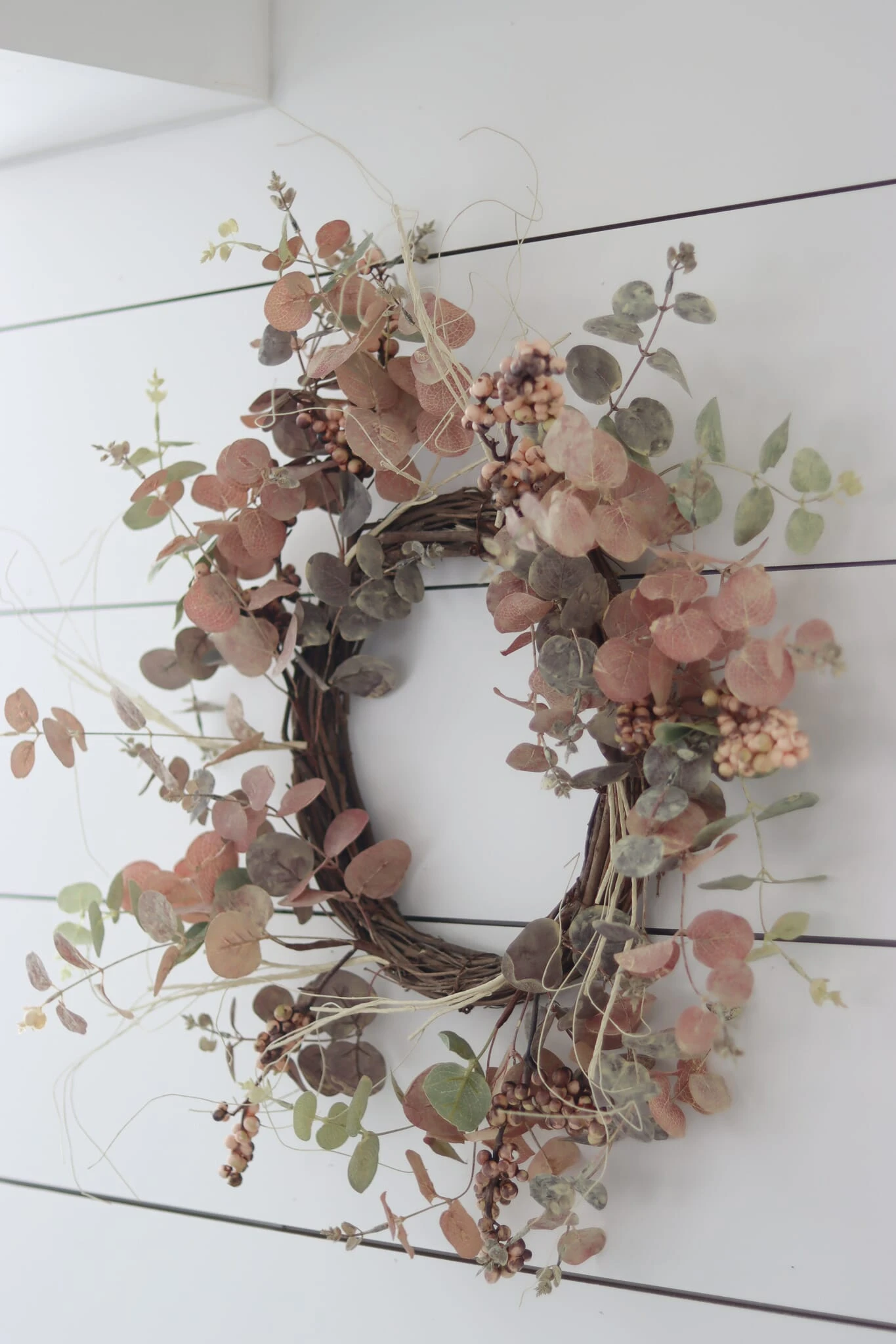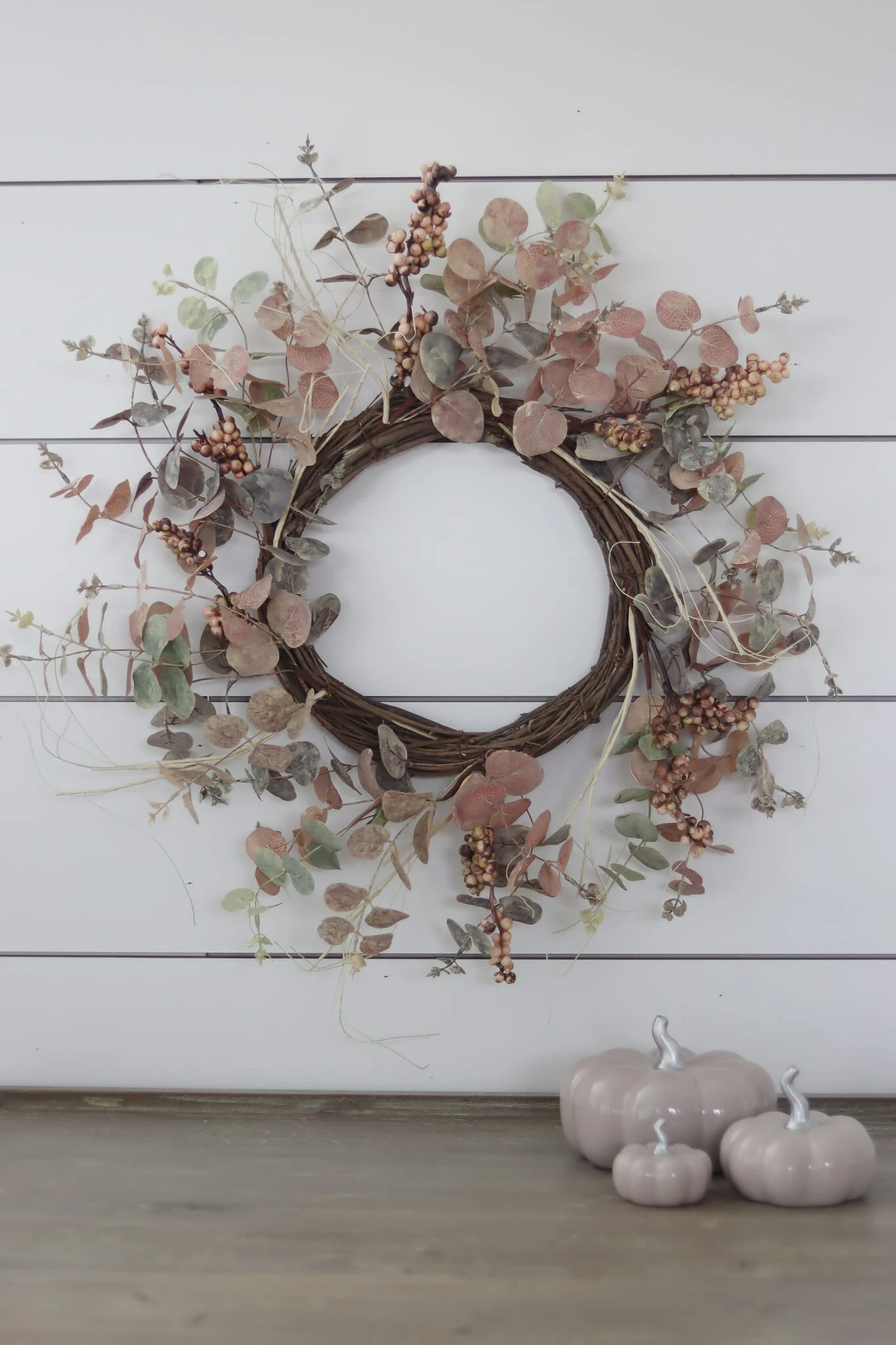 Elevate your autumn decor with this artificial autumn wreath finished in eucalyptus and berries..Designed in light muted tones of burgundy, mixed with lighter toned berries. Hang it on your door or use it as a centre piece with your autumn table decorations or use it internally to bring autumn inside.