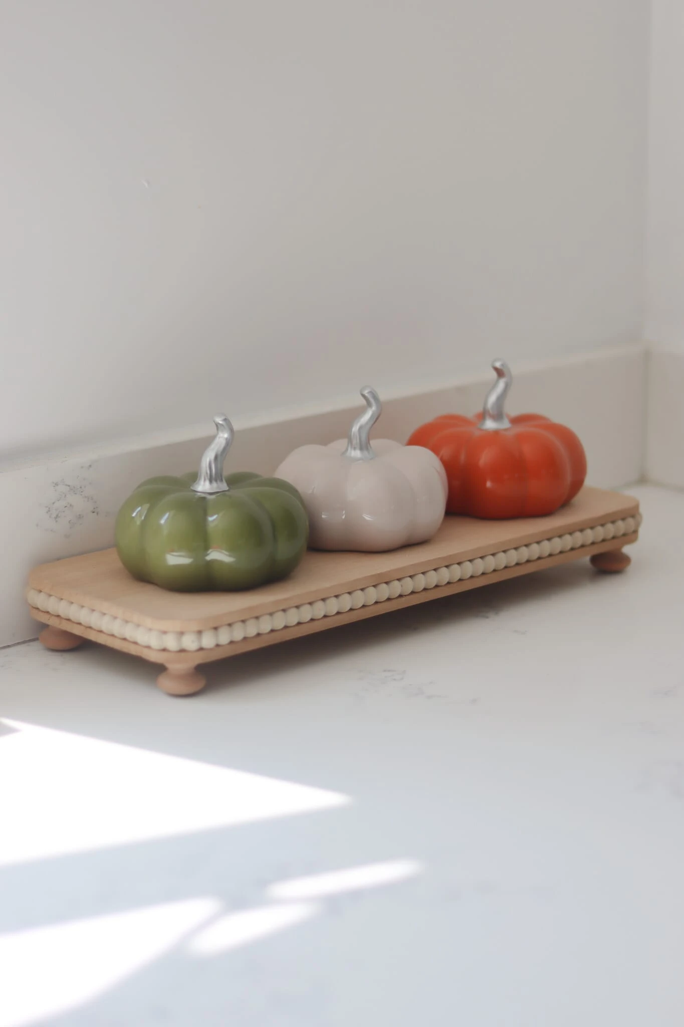 The raised finish allows for tea, coffee & sugar canisters to be placed on top, or simply place some classic salt and pepper mills on with a flower arrangement or use some of our kitchen ornaments to style your home. Unique beaded finish around the outside of the trays adds a lovely touch and brings some character into the home.