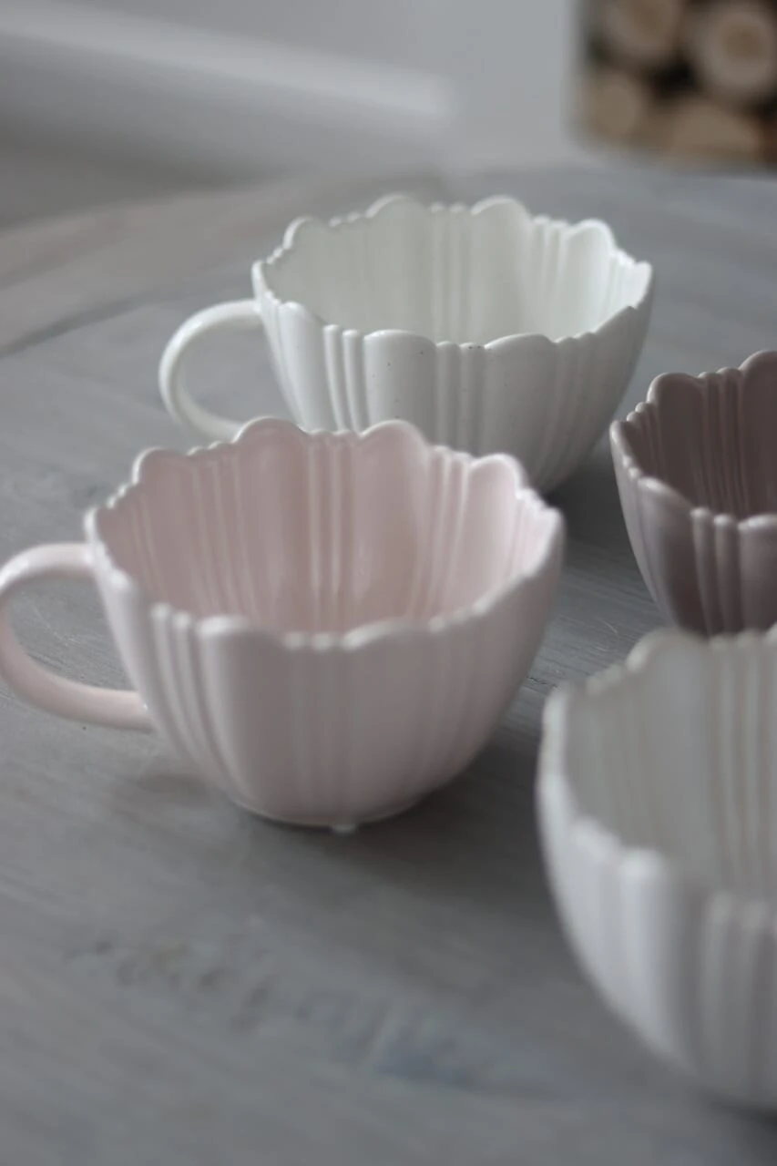 Introducing our beautifully designed Maggie mug, with its flower-like rim and delicate ridges, it is perfect for your morning coffee or tea. Available in 4 colour ways so that you can create a set.