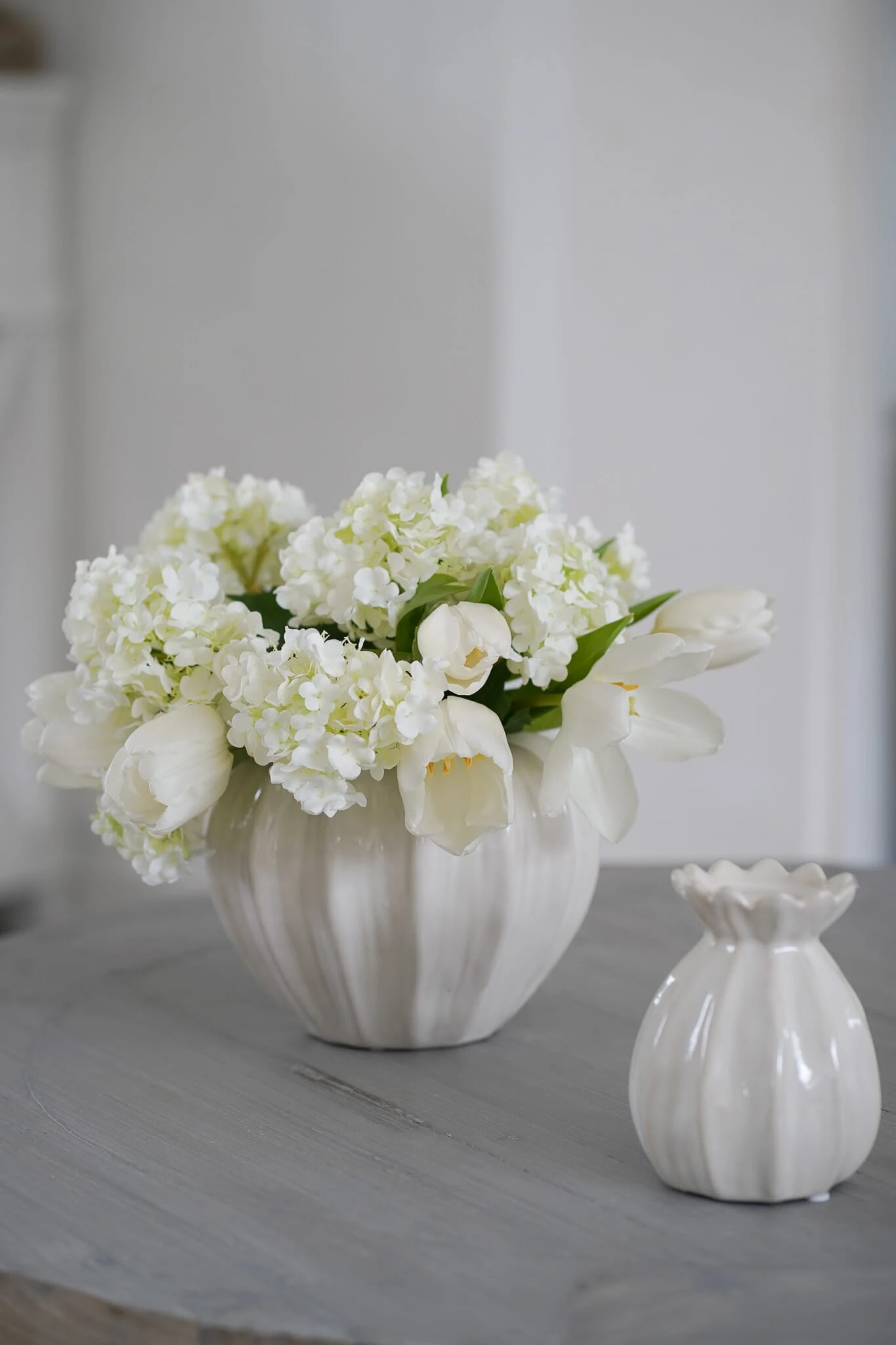 The Maggie Vase: a timeless addition to any home decor collection. This white ceramic vase is crafted with attention to detail, this versatile vase is designed to showcase the beauty of both real and artificial flowers. Its watertight construction ensures that fresh blooms stay vibrant and hydrated, while also providing a perfect vessel for artificial arrangements.