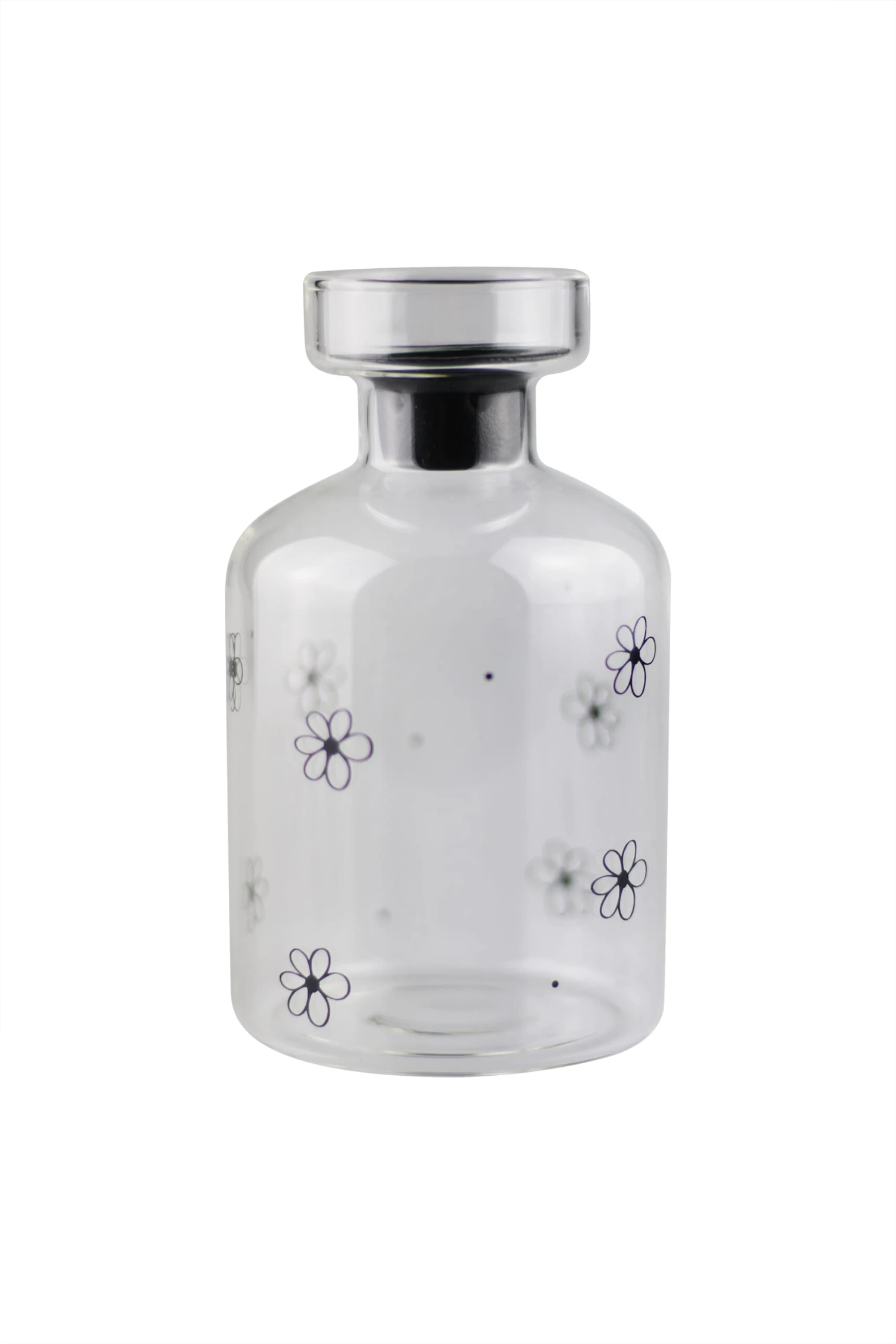 Our glass candle holders have a small metal insert which holds the candle in place inside the candle holder. Adding to the uniqueness of this candle holder we have finished it off with black floral artwork to match the removable metal insert.