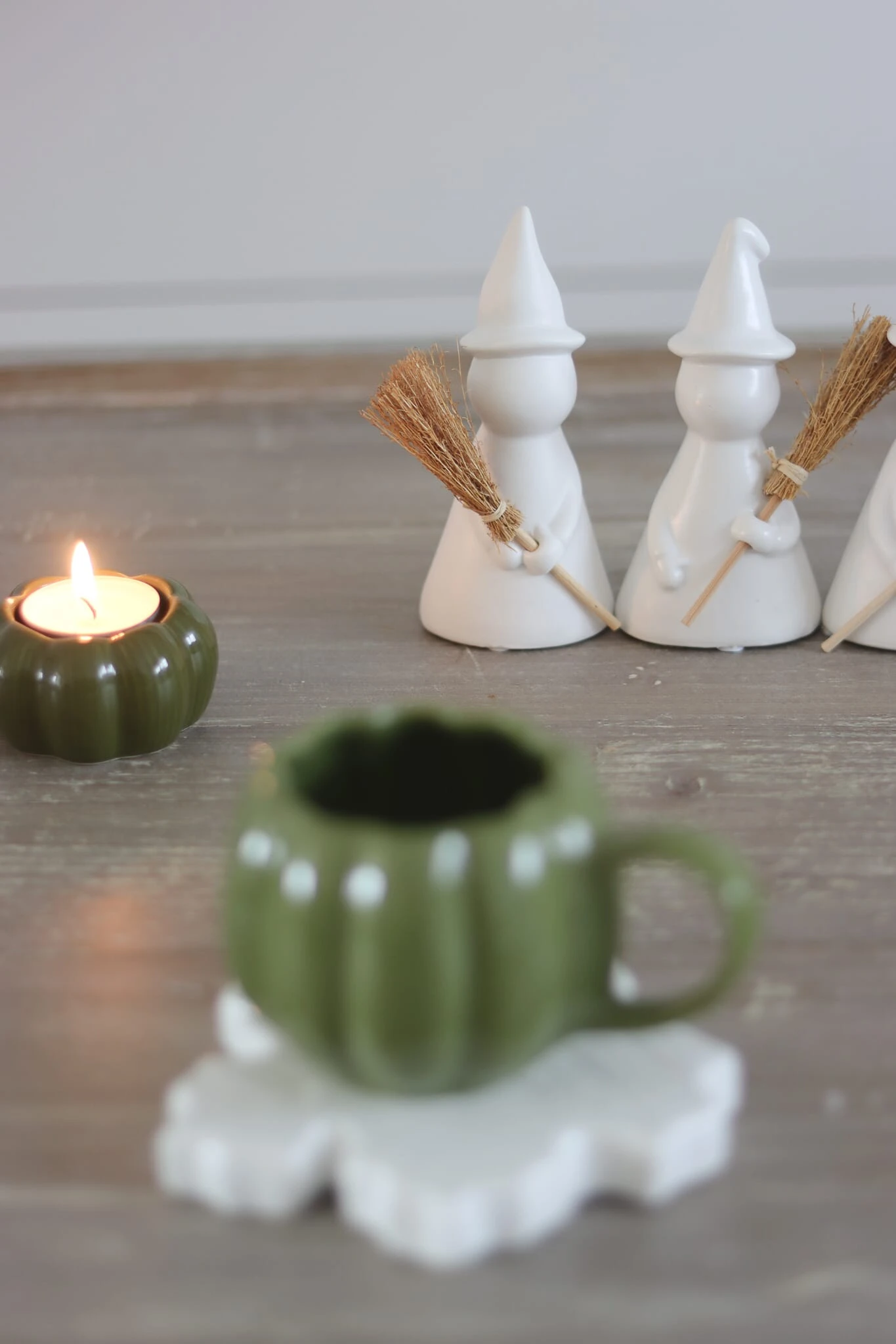 These pumpkin mugs are a capacity of 350ml and are perfect to wrap your hands around or just to be used as cute autumn table decorations.