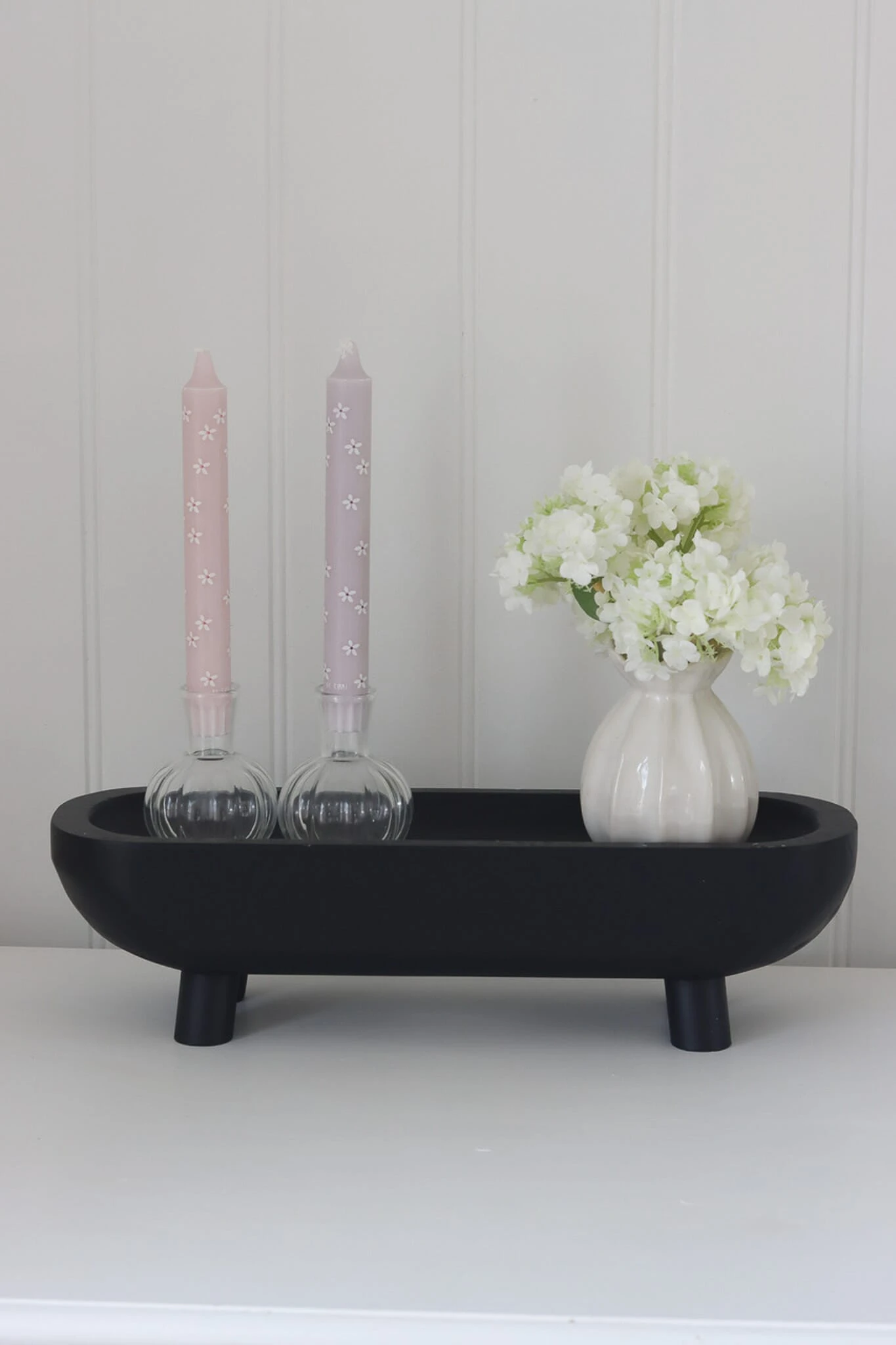 Introducing our Paulownia Tray on Legs, finished in Black. This wooden tray boasts a sleek design with sturdy legs that effortlessly elevate your home decor. Great for styling side boards, kitchen island units , worktops and shelving units.