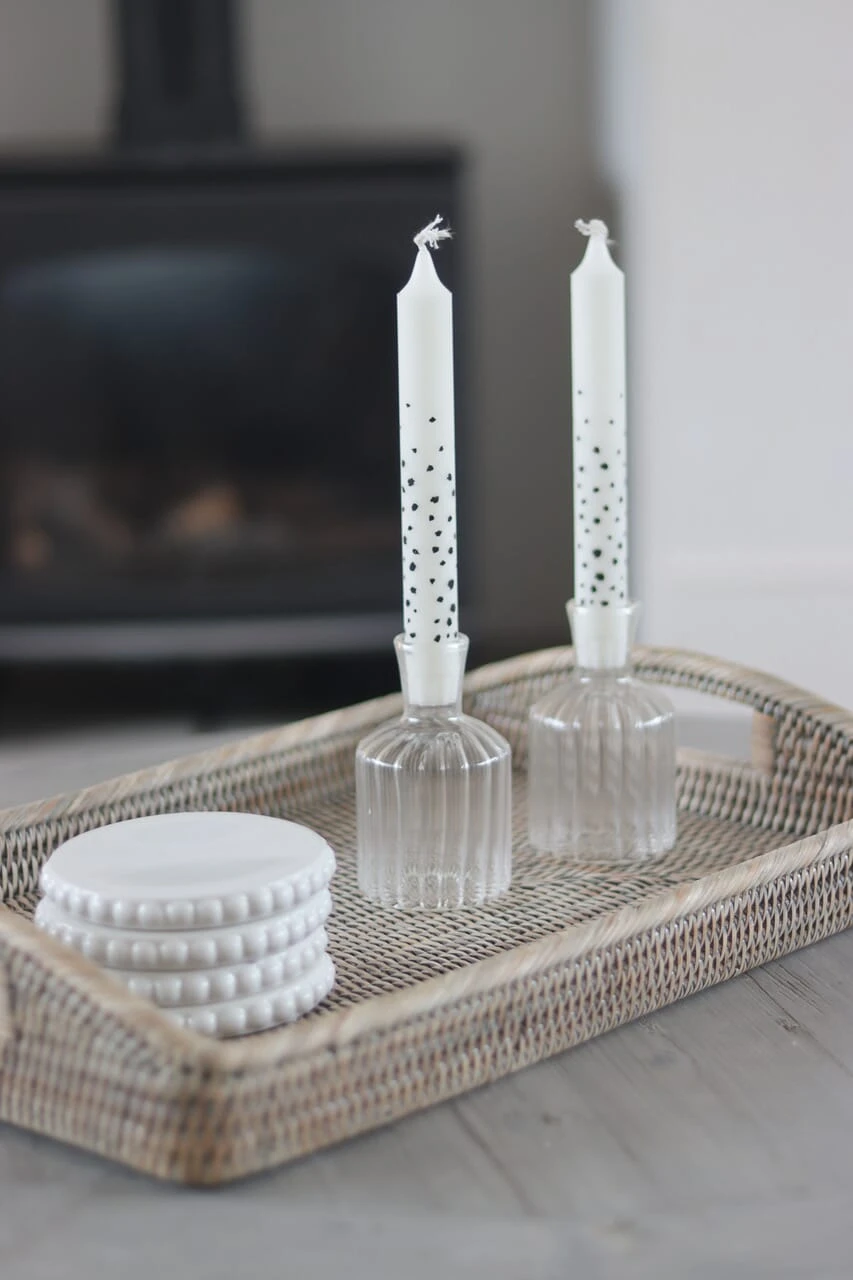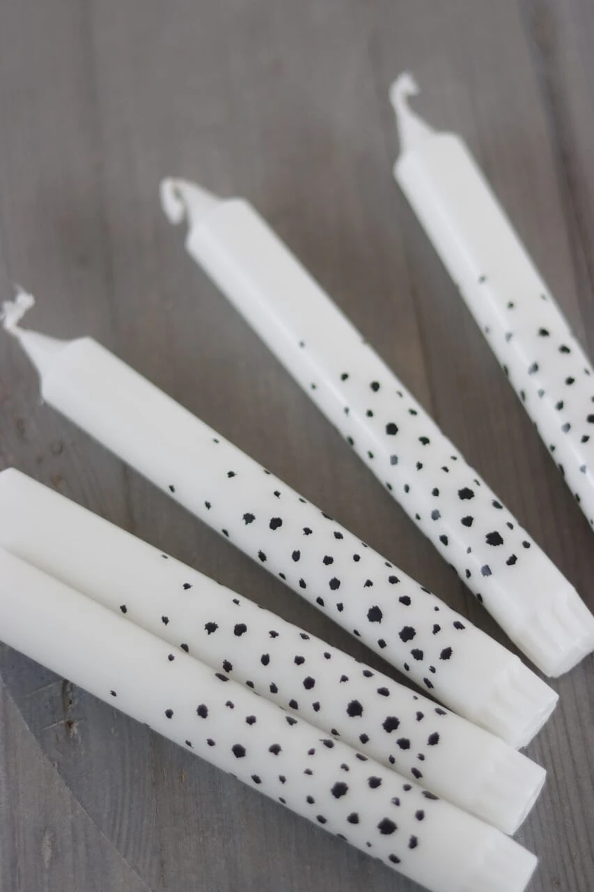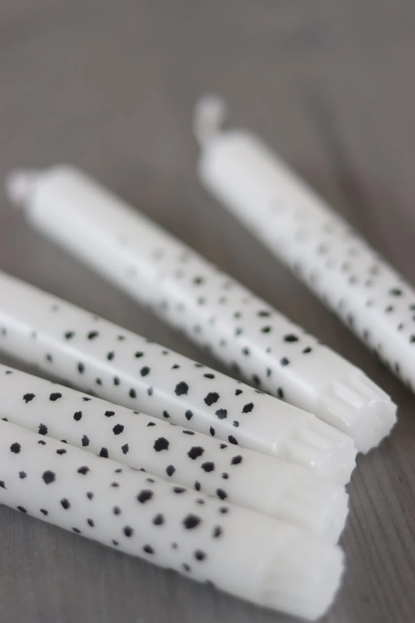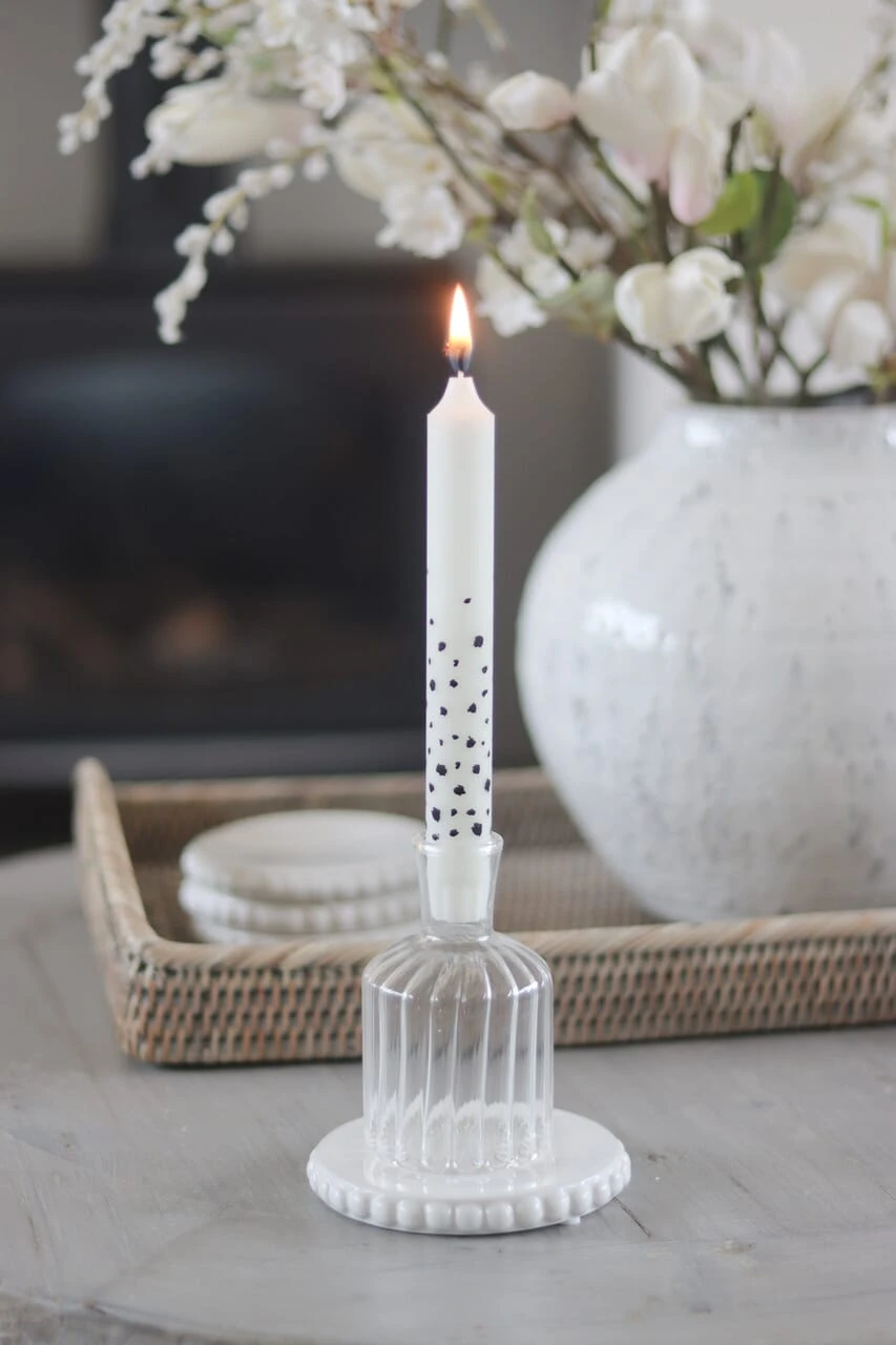 Light up your space with our beautiful polka dot candlesticks, White candles with a Black polka dot hand painted pattern.