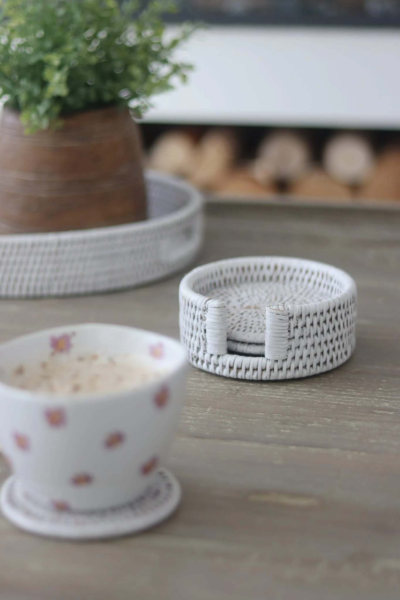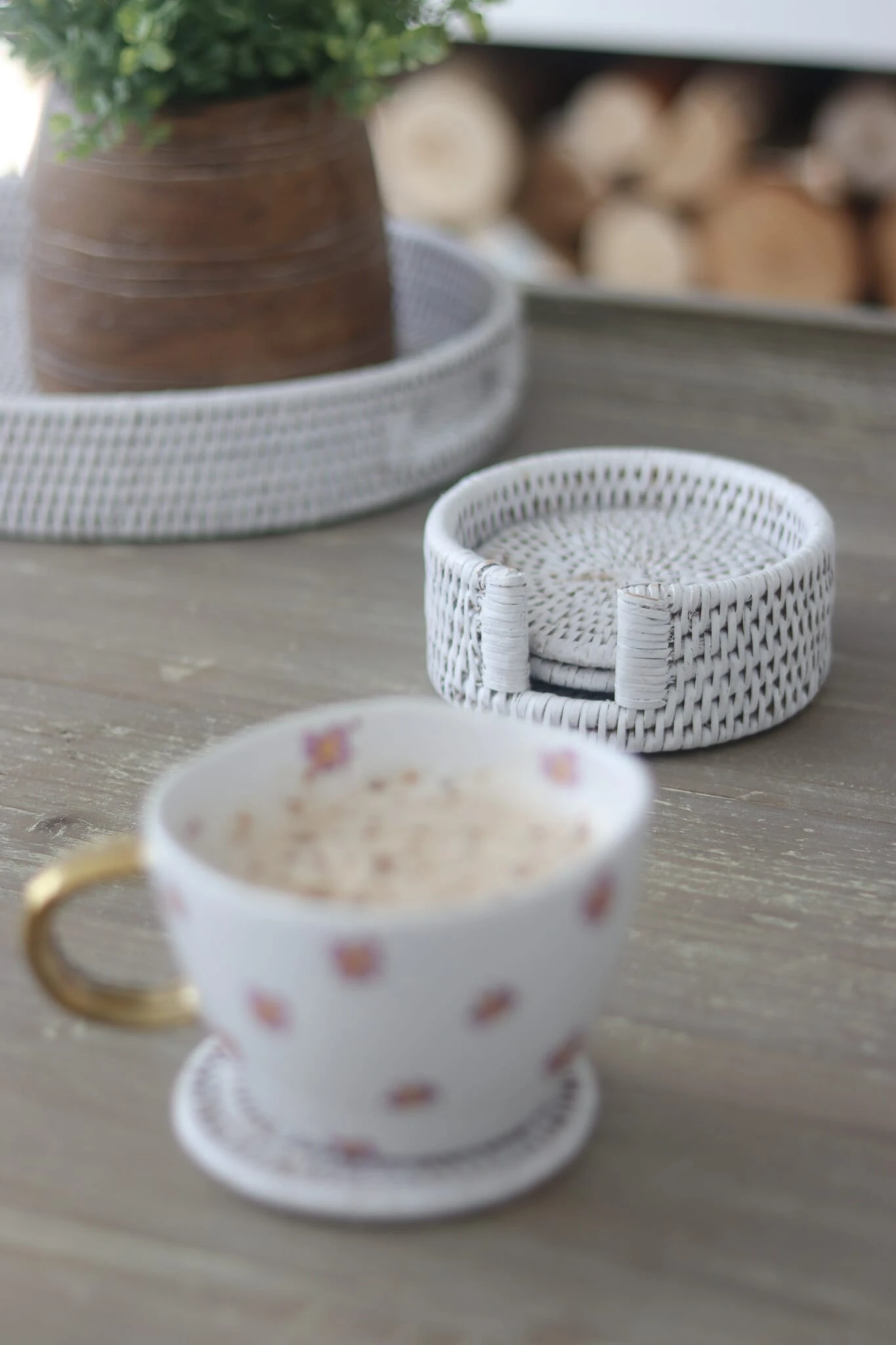 Infuse your space with understated sophistication using our Rattan Coasters finished in white. These hand crafted coasters offer a delicate balance between form and function, ensuring your surfaces remain safe from moisture and marks. The white rattan adds a contemporary twist to the traditional rattan aesthetic, making these coasters a perfect addition to modern interiors and elevating the visuals of your favourite cute mugs.