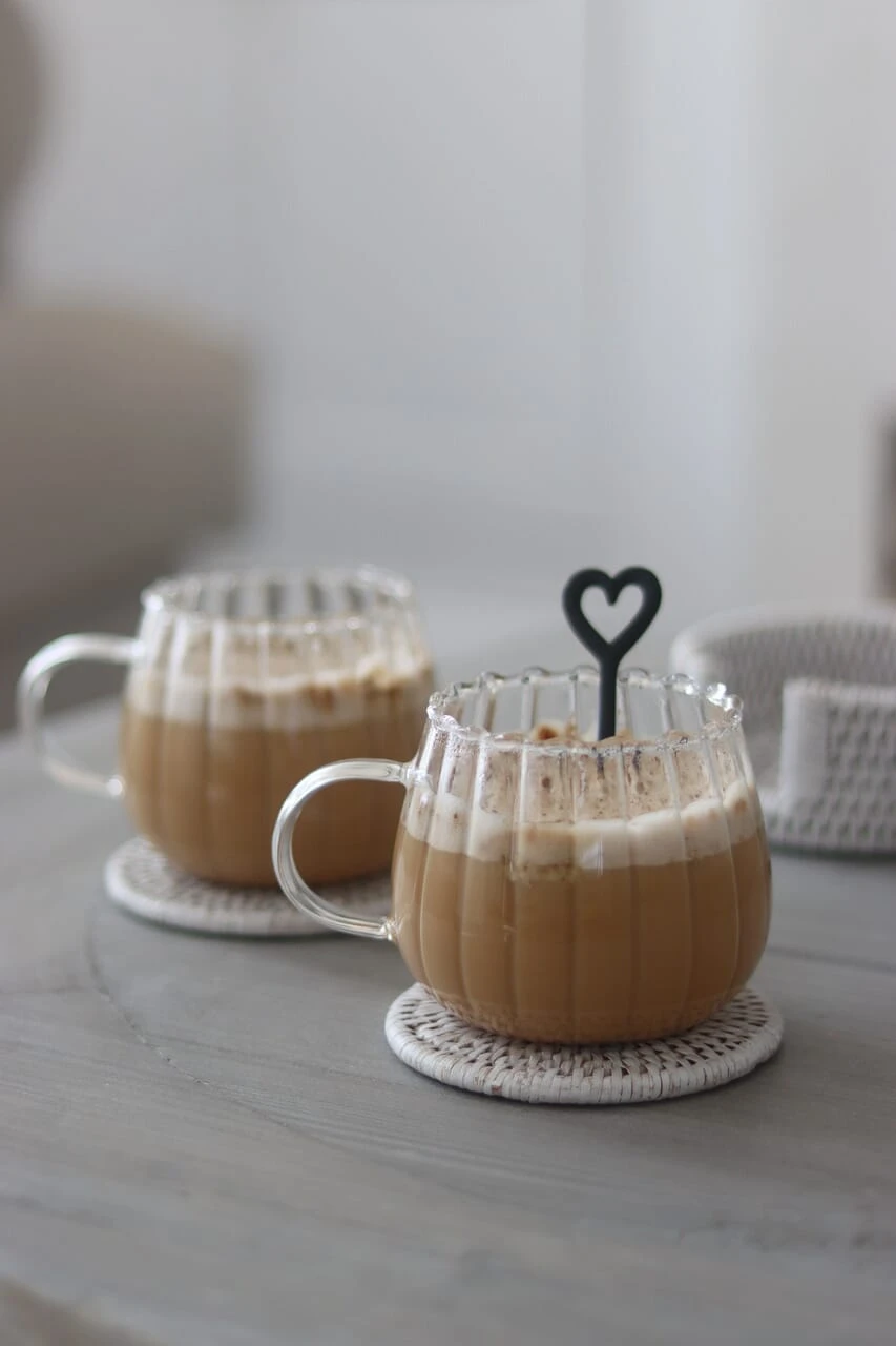 Looking for a cute mug to not only increase your drink ware collection but also enhance your kitchen decor? our set of 2 rippled glasses are the perfect addition. The rippled design not only adds a unique look to your drinks but also serves a functional purpose by maintaining the ideal temperature for your beverages. Sold as a 2 pc set.