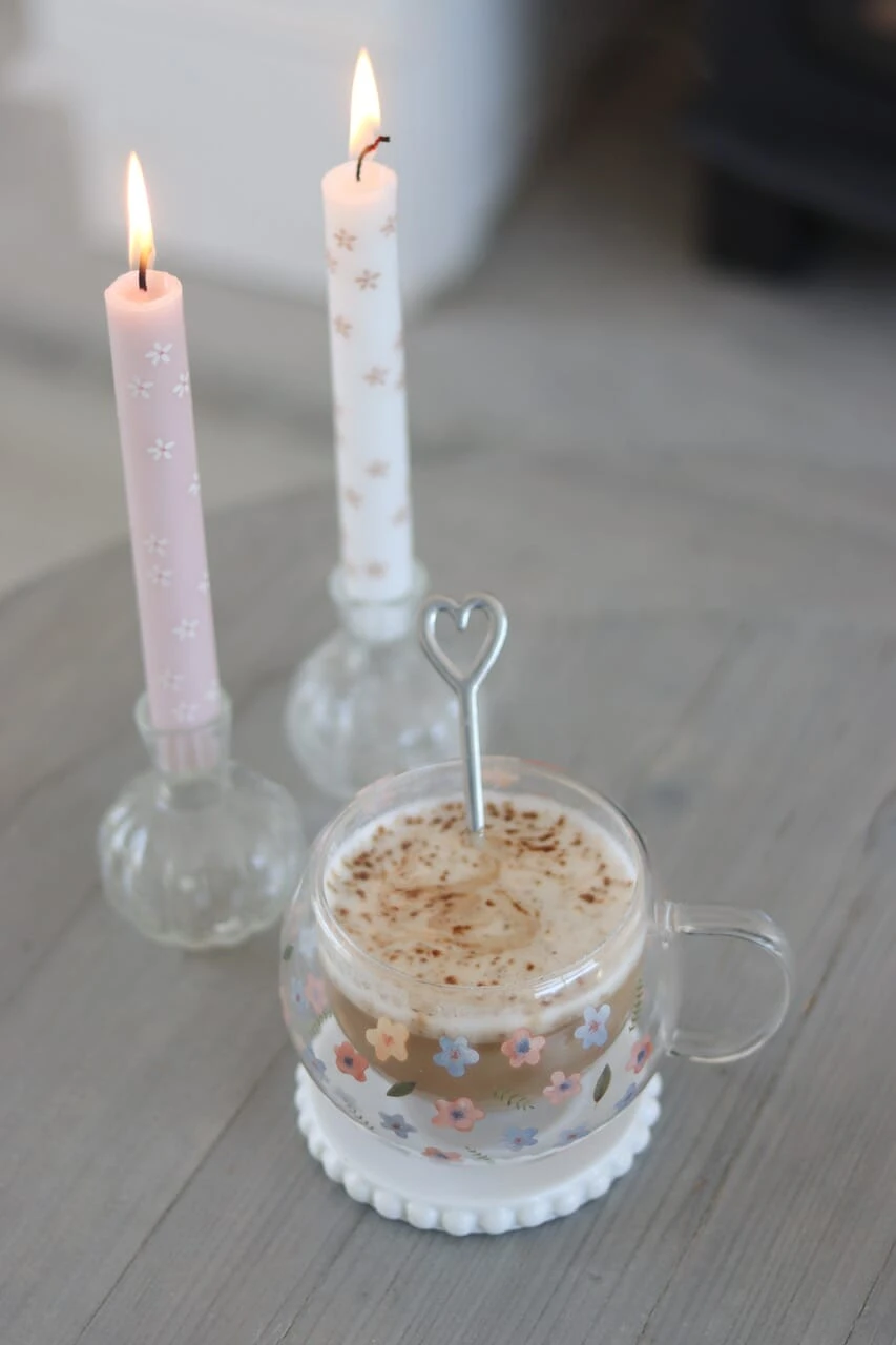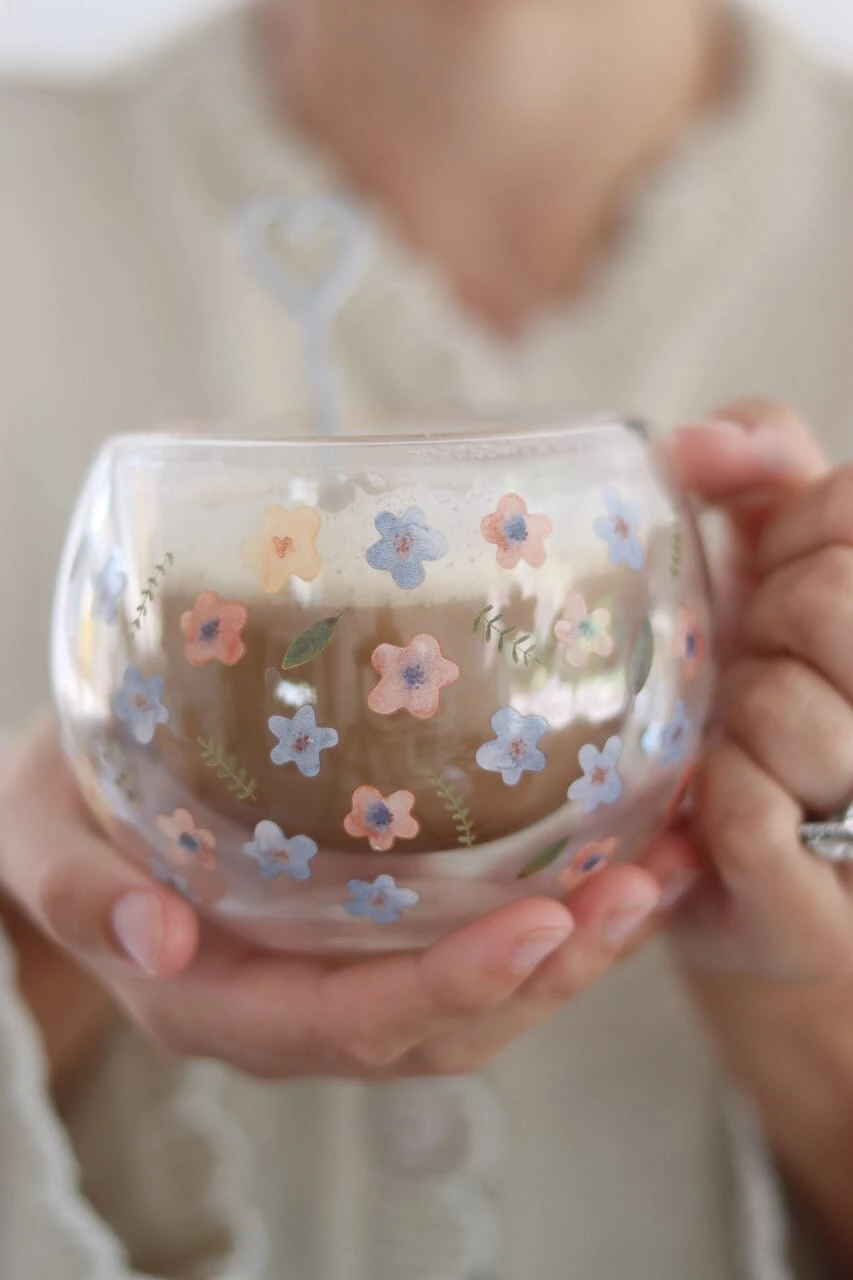 Enhance your morning coffee or tea with our Double Wall Glass Mug, featuring a beautiful floral pattern. This heat-resistant, insulated mug keeps beverages perfectly warm or cool, marrying style with functionality for everyday elegance.