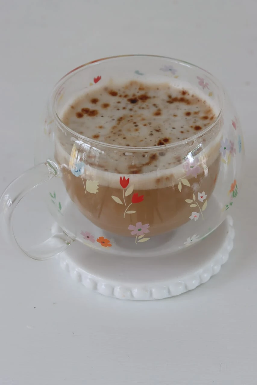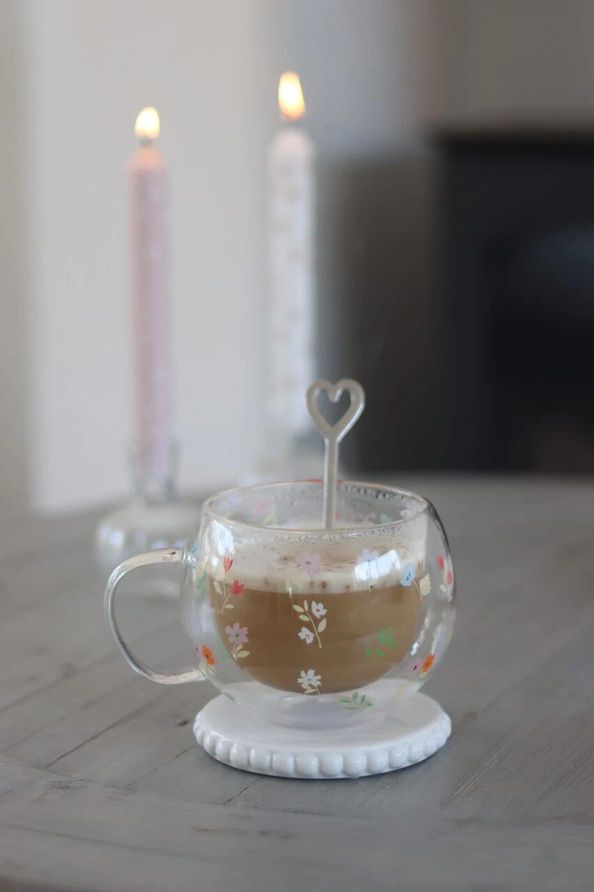 Enhance your morning coffee or tea with our Double Wall Glass Mug, featuring a beautiful floral pattern. This heat-resistant, insulated mug keeps beverages perfectly warm or cool, marrying style with functionality for everyday elegance.