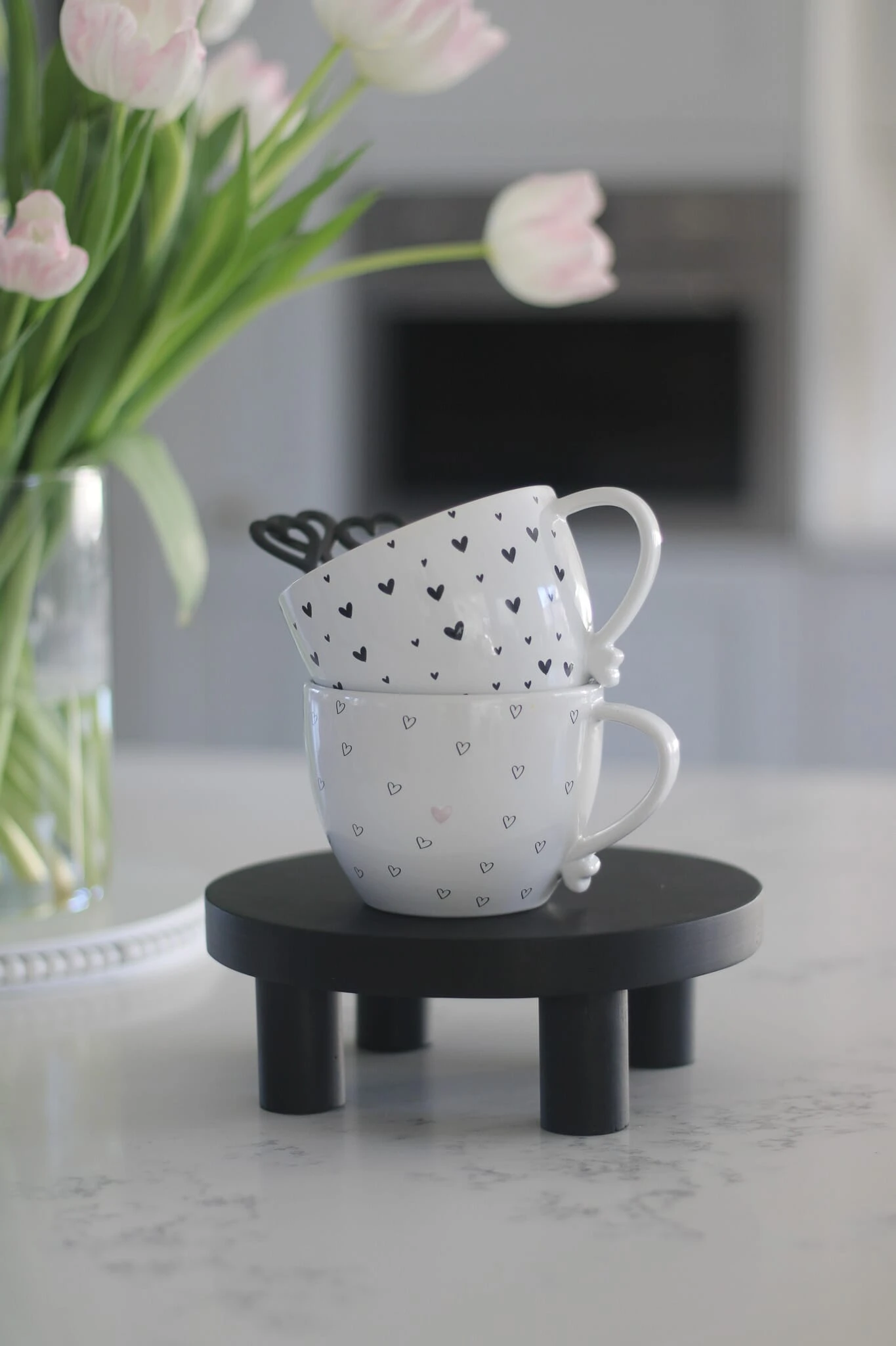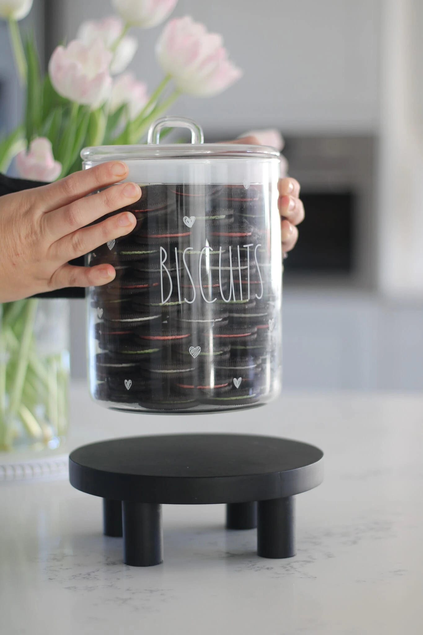 These small stools are made from solid Acacia wood finished in black. Whether used as simple risers for a candle holder or raised surface for a ceramic vase filled with your favourite real or artificial flowers. Raising items from the service of your worktops will natural attract attention and add some detail to your kitchen decor.