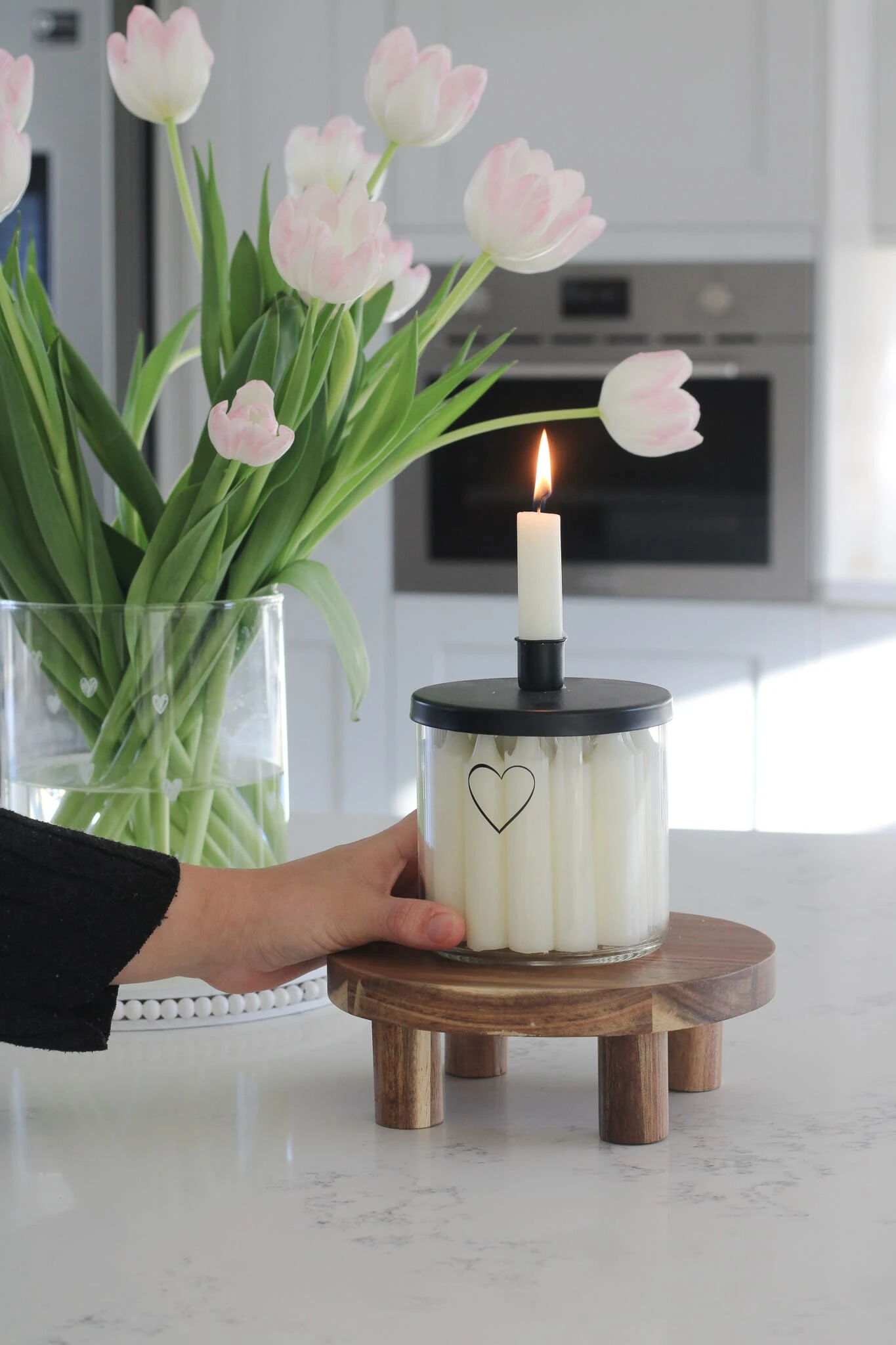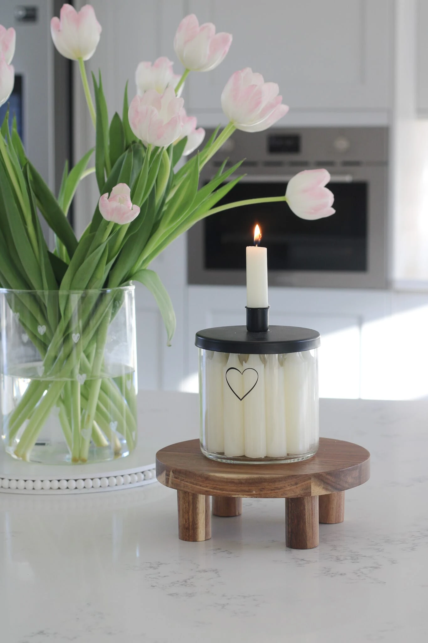 Our small stools are made from solid acacia wood finished in its natural tone. Used as simple risers for a candle holder or a ceramic vase with your favourite real or artificial flowers on display. Raising items from the service of your worktops will natural attract attention and add some detail to your kitchen decor.