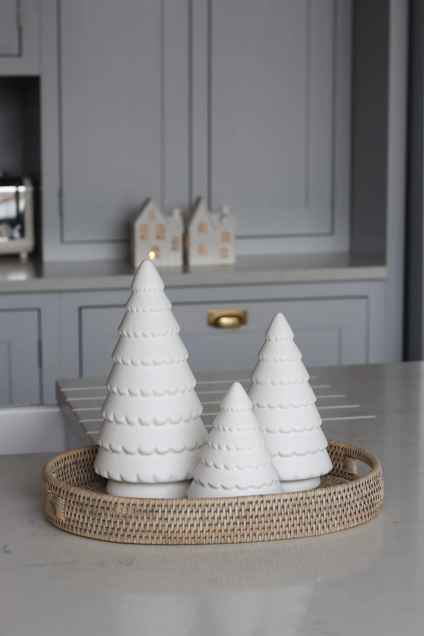 Add a modern touch to your Christmas decor with our large scalloped ceramic Christmas tree. Crafted from high-quality stoneware, each tree features a pretty scalloped design. Perfect for mantels, shelves, or tabletops, these decorative trees bring a stylish, minimalist charm to any space. Also available to purchase as a set of 3.