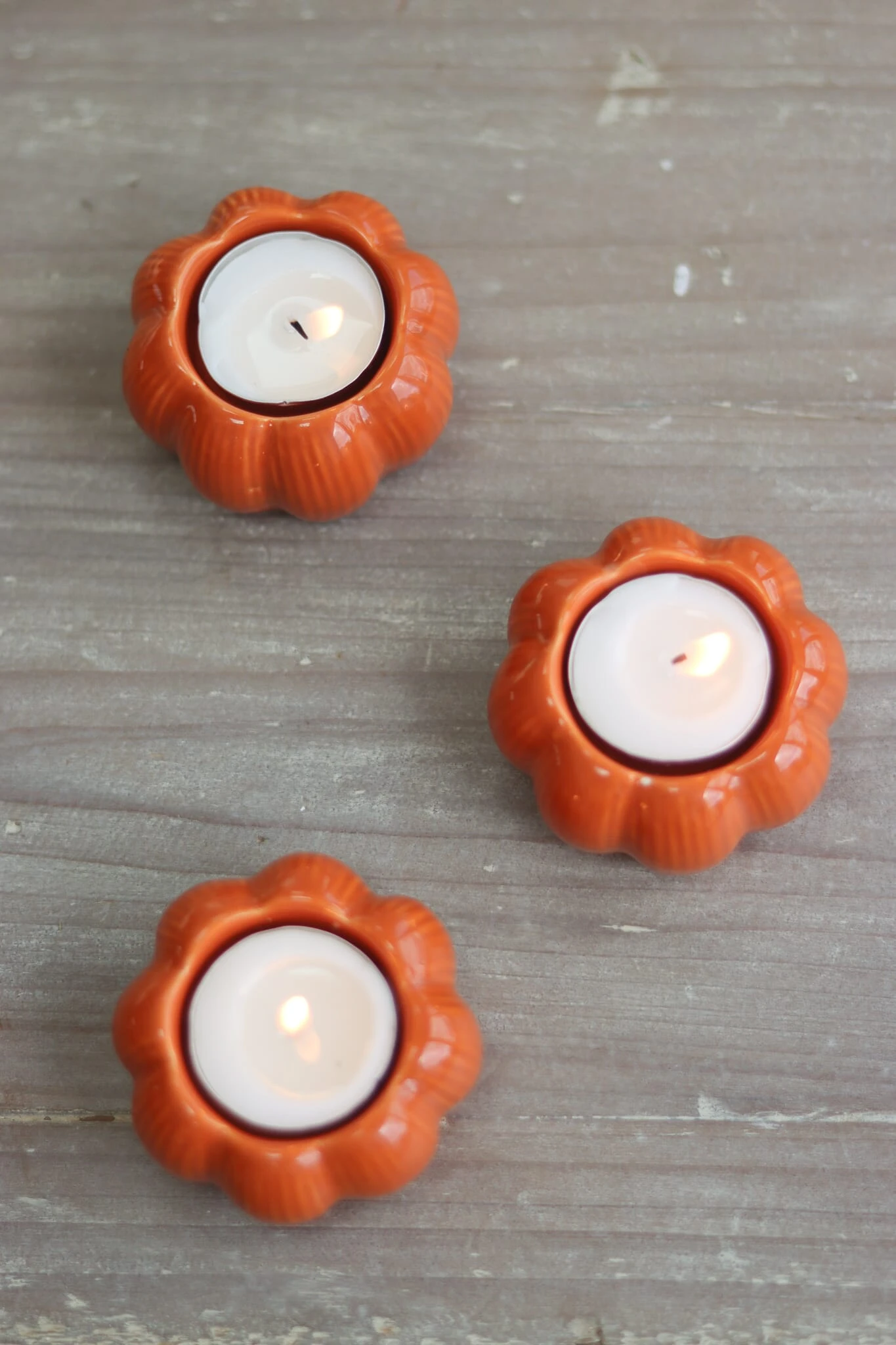 Introducing our Set of 3 pumpkin tea light ceramic candle holders finished in autumnal orange.