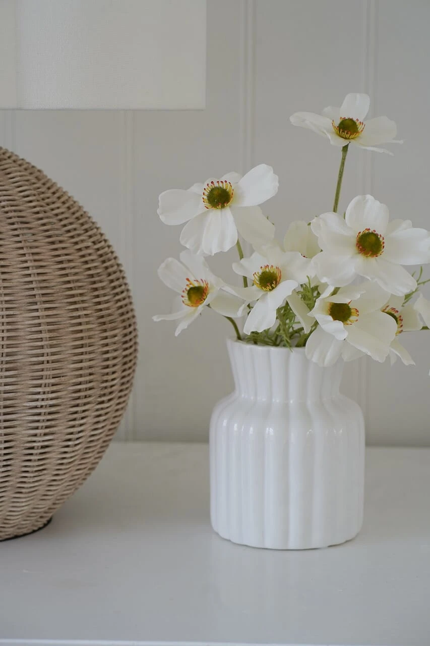 Our small ceramic vase is ideal for your fresh or faux flowers, smaller in size than normal vases but larger than bud vases, our ribbed vase makes it easy to style your favourite blooms at home. When not using it for flowers, why not use in the kitchen for utensil storage or style on a shelf on its own.