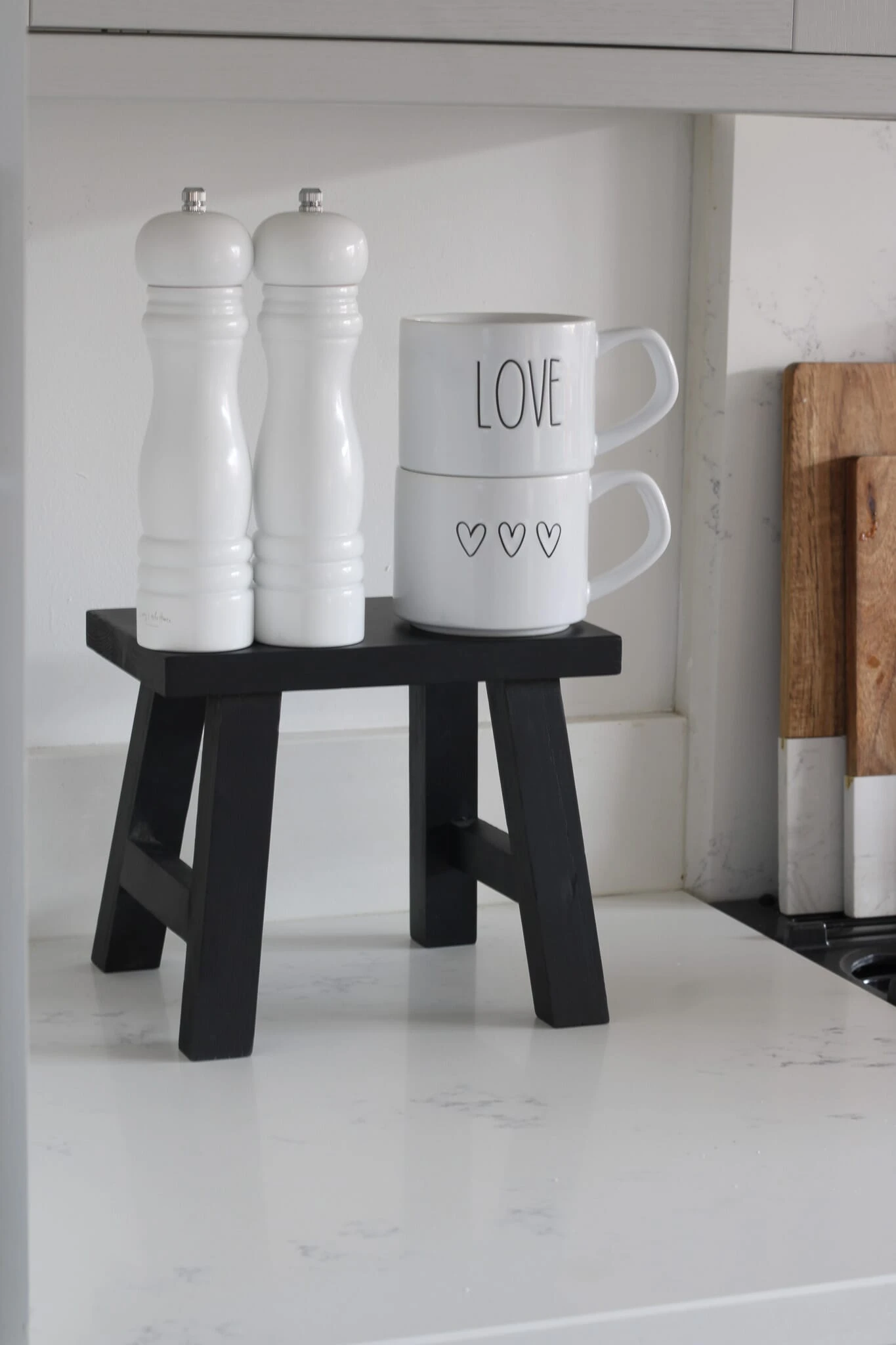 If you like black home decor or just want to implement some darker colours into your kitchen, this small wood stool is perfect.