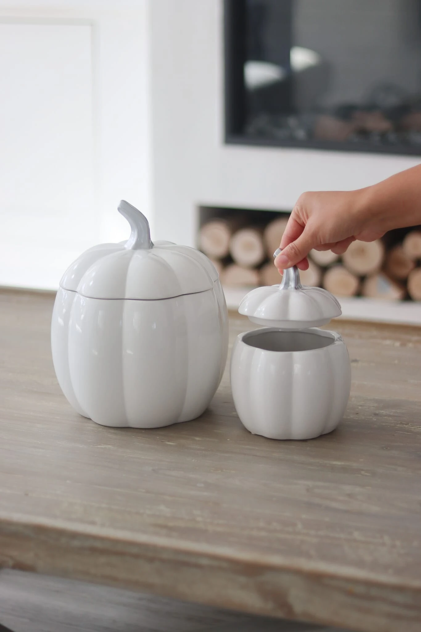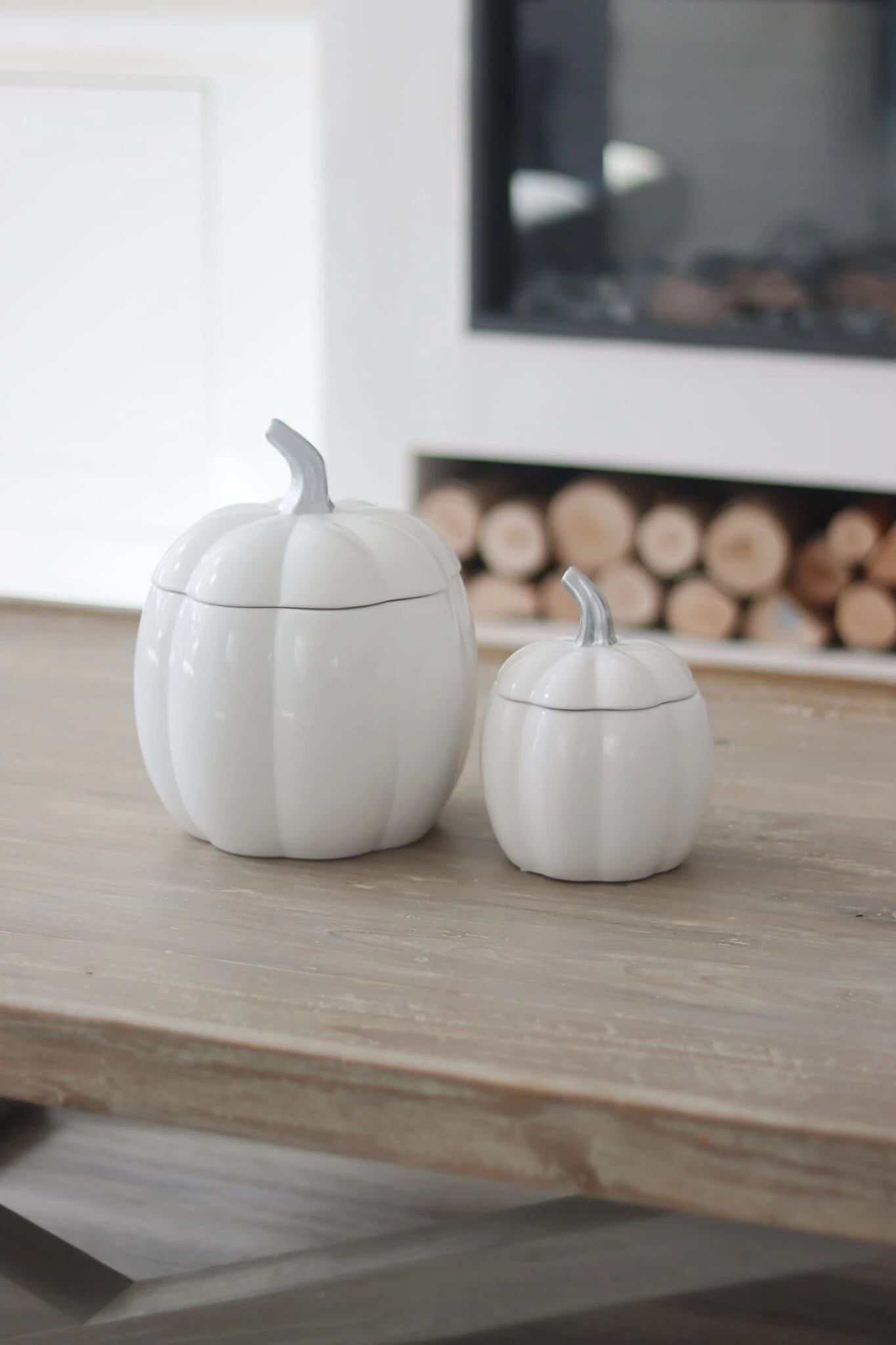 Experience the essence of autumn with our White and Silver ceramic pumpkins. These ceramic jars add a touch of seasonal charm to your autumn home decor, effortlessly transitioning from summer to fall. Mix and match them with our other ceramic pumpkins or pumpkin mugs in various colour variations to create captivating autumn table decorations.