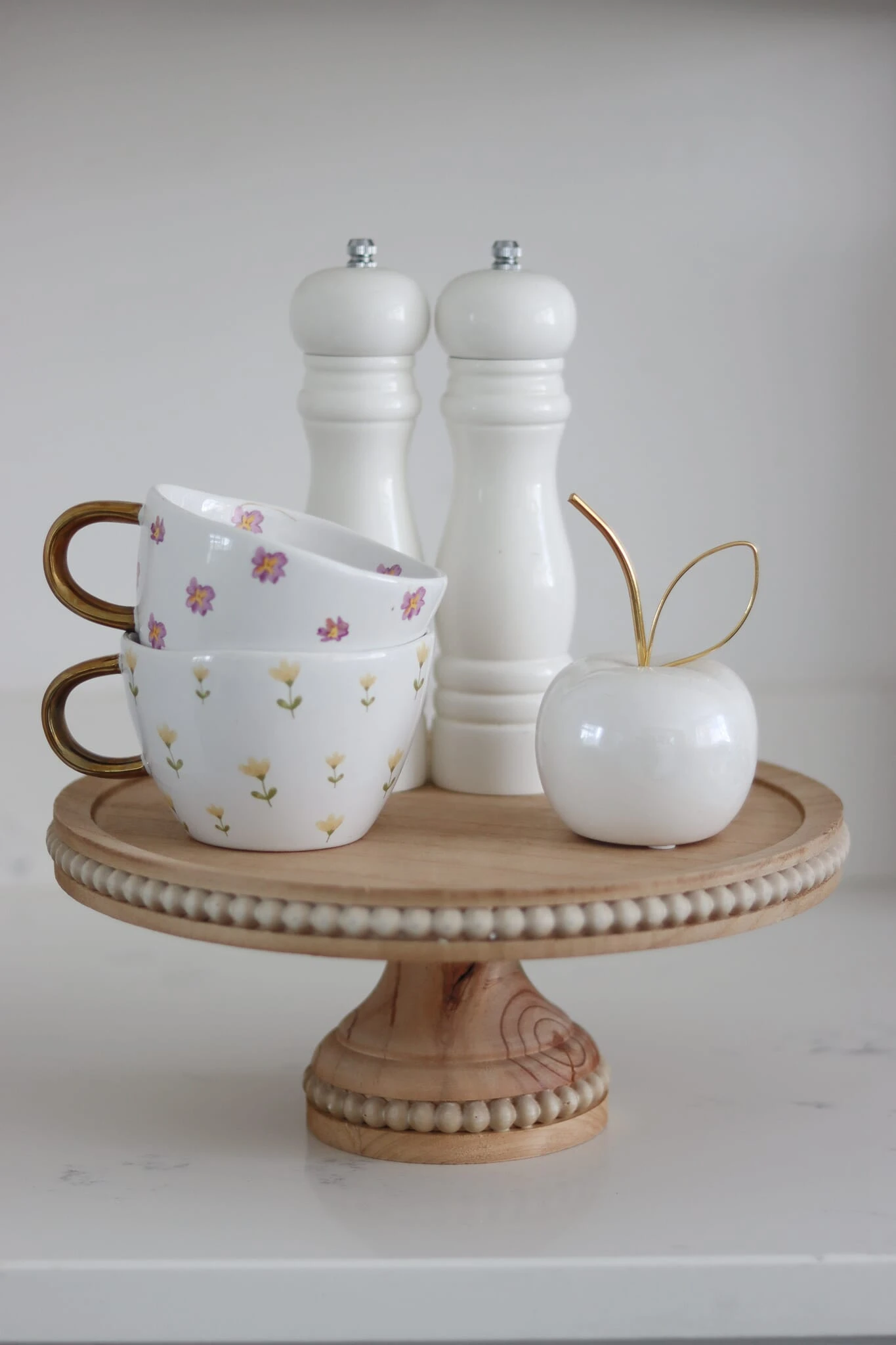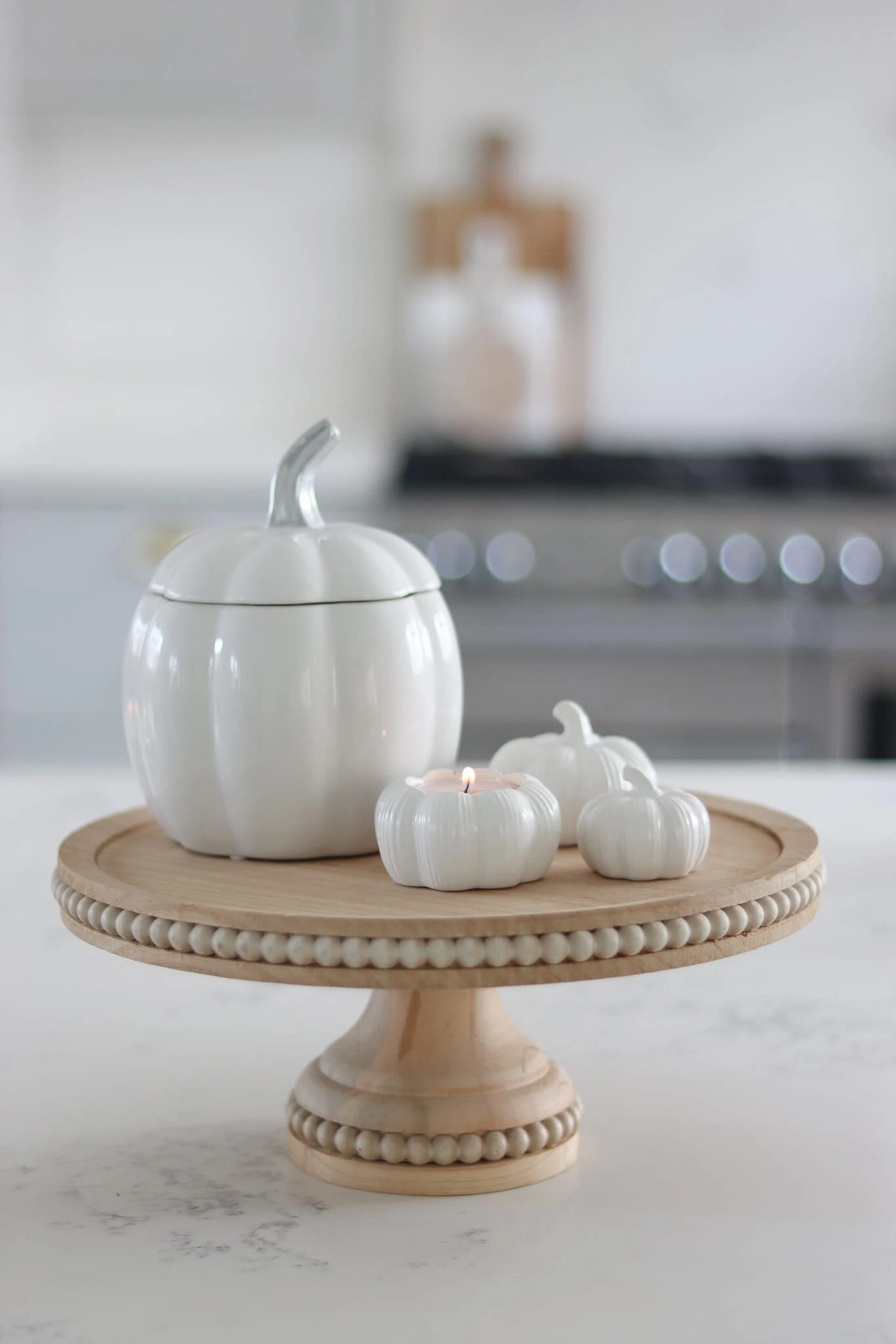 A beautiful Paulownia wood cake stand, with beading detail. Ideal for displaying seasonal items in your home, kitchen ornaments and more. Use with your favourite ceramic vase in the centre of your kitchen island unit, create a seasonal display or off course you can place your favourite cake on for guests to enjoy.
